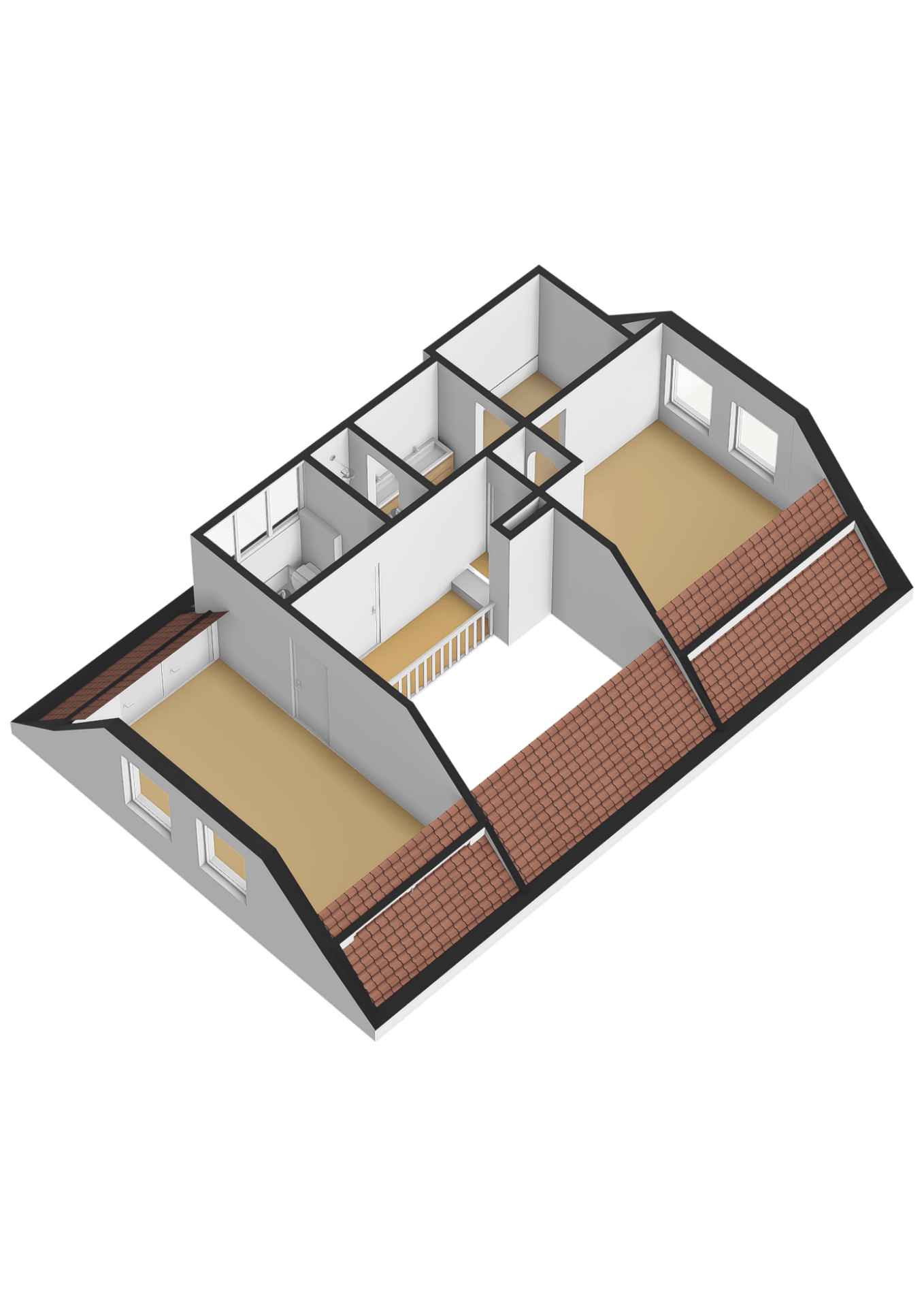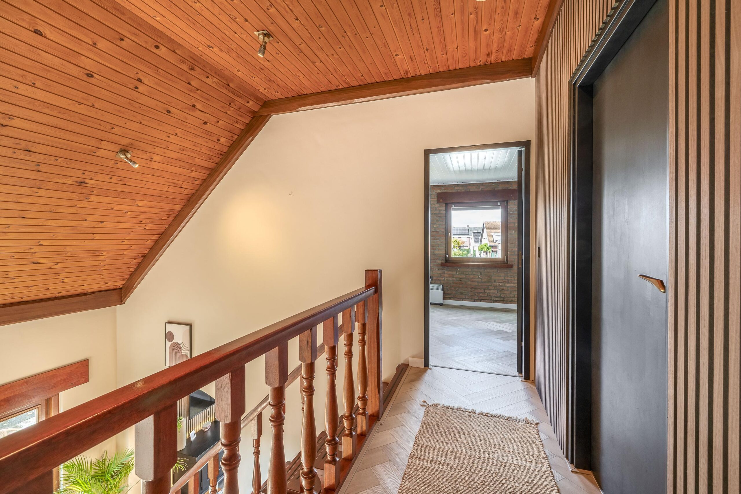 Vanuit de overloop/vide met pvc-vloer is er toegang tot de twee slaapkamers en de twee badkamers.