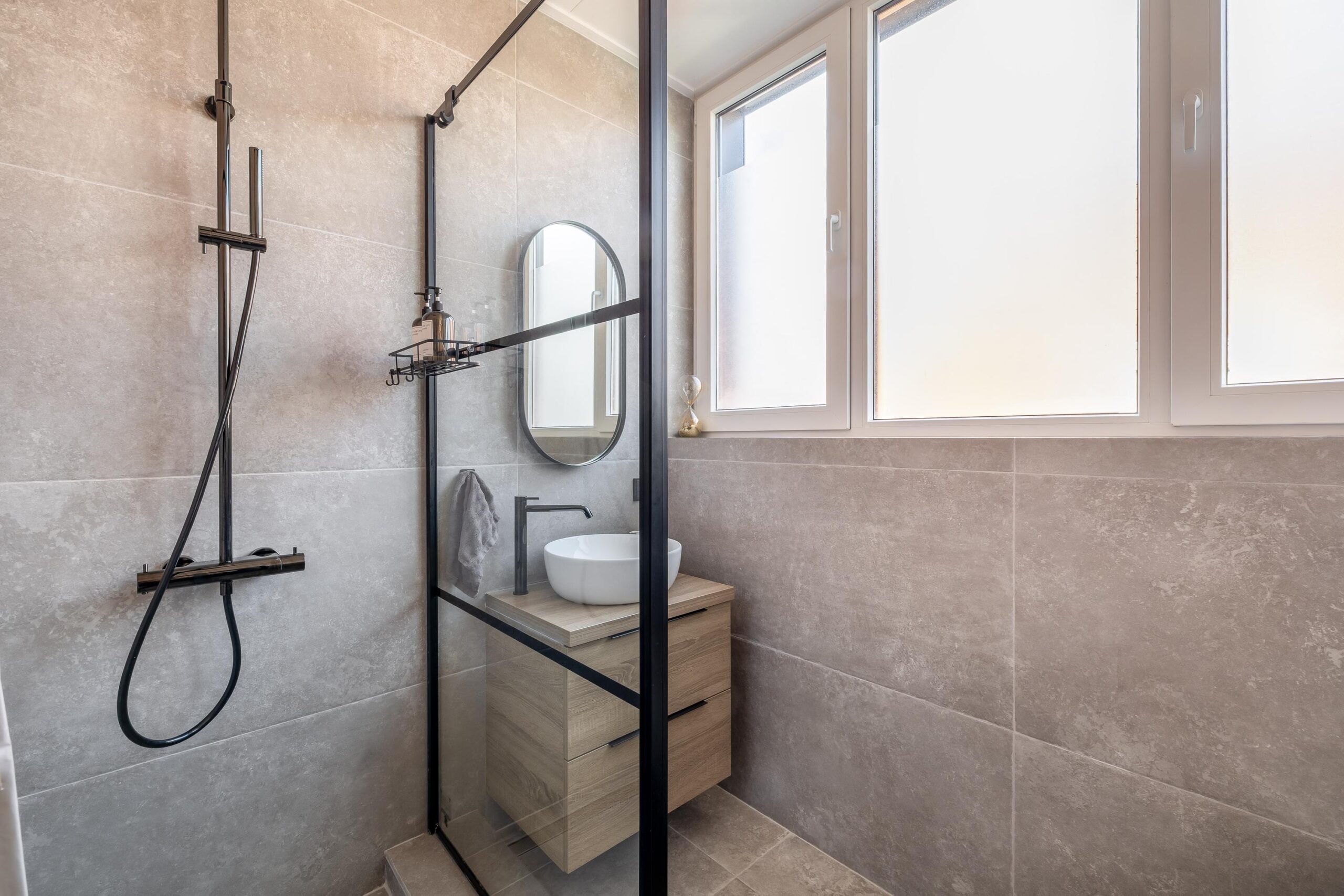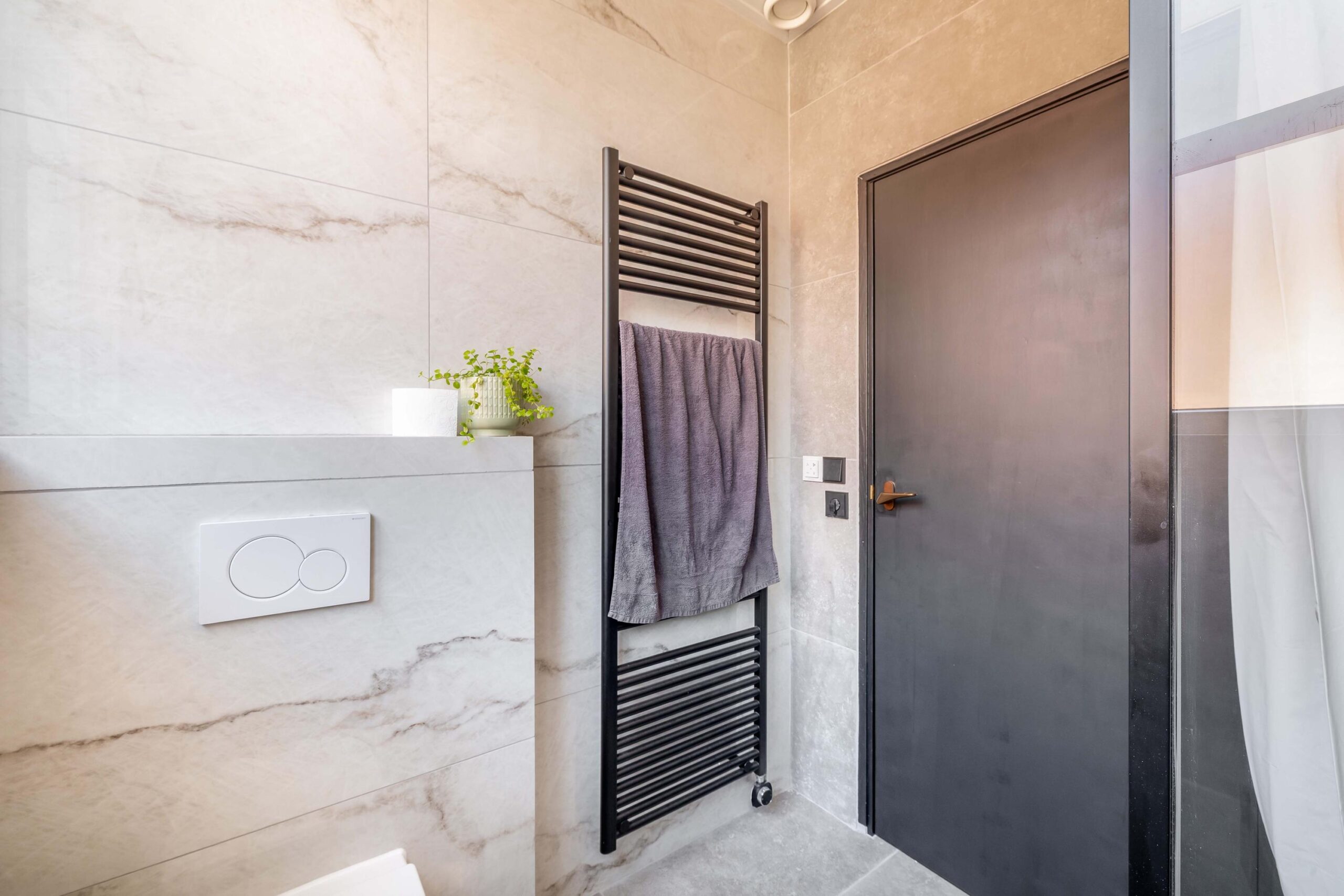 Beide badkamers zijn nieuw. Eén badkamer is voorzien van een douche, wastafelmeubel, toilet, designradiator en raam. De andere badkamer is en-suite bereikbaar via de hoofdslaapkamer en voorzien van een dubbele inloopdouche, een dubbel wastafelmeubel, toilet en designradiator.