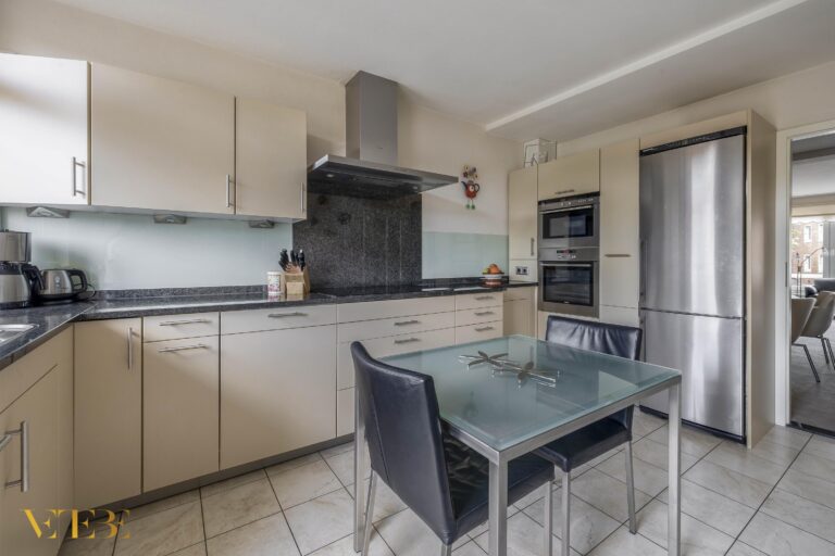 De keuken (ca. 13m²) is uitgerust met een koelkast met diepvries, combi oven/magnetron, oven, 6-zone inductiekookplaat (2024), afzuigkap en vaatwasser. Het geheel is afgewerkt met een granieten werkblad. Vanuit de keuken is het grote dakterras bereikbaar.