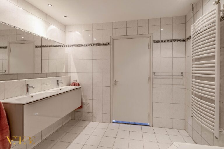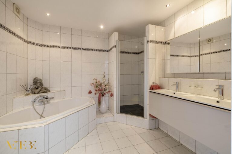 De slaapkamers (ca. 18,5m² en 23,5m²) zijn beiden voorzien van vloerbedekking. Een slaapkamer heeft een muurkast en balkon. In de grote badkamer (ca. 8m²) zijn een ligbad, douche, dubbele wastafel met meubel, designradiator en mechanische ventilatie aanwezig. De badkamer is geheel betegeld