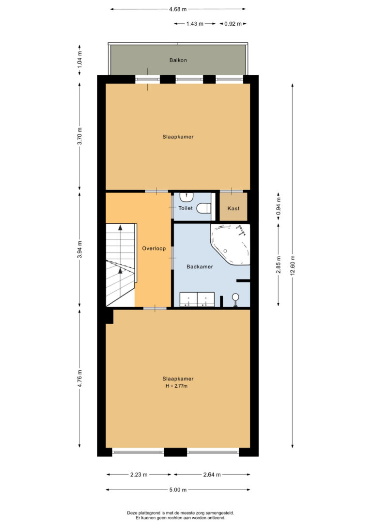Op de overloop is het toilet met fonteintje aanwezig. Daarnaast liggen er op deze verdieping twee slaapkamers en de royale badkamer.