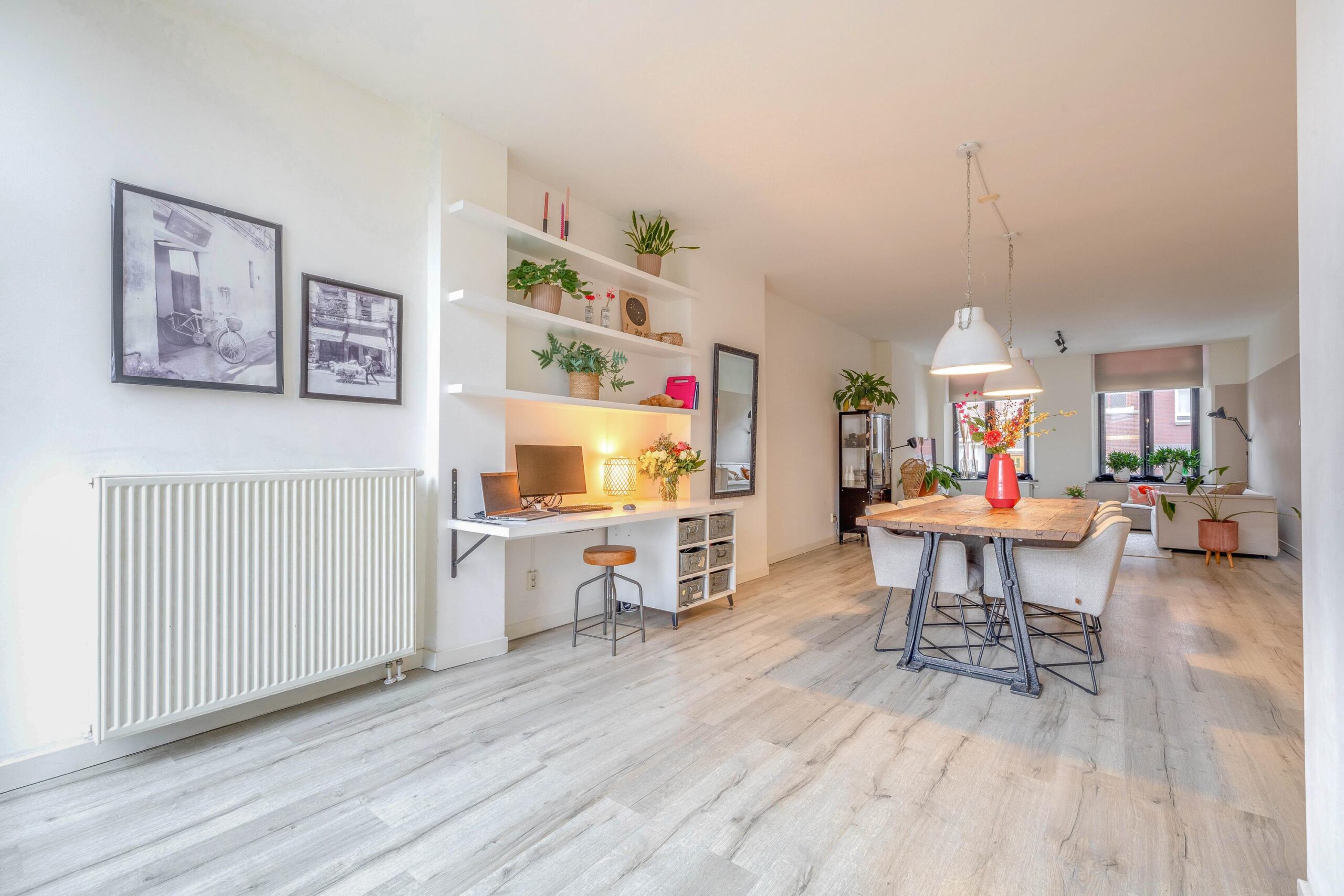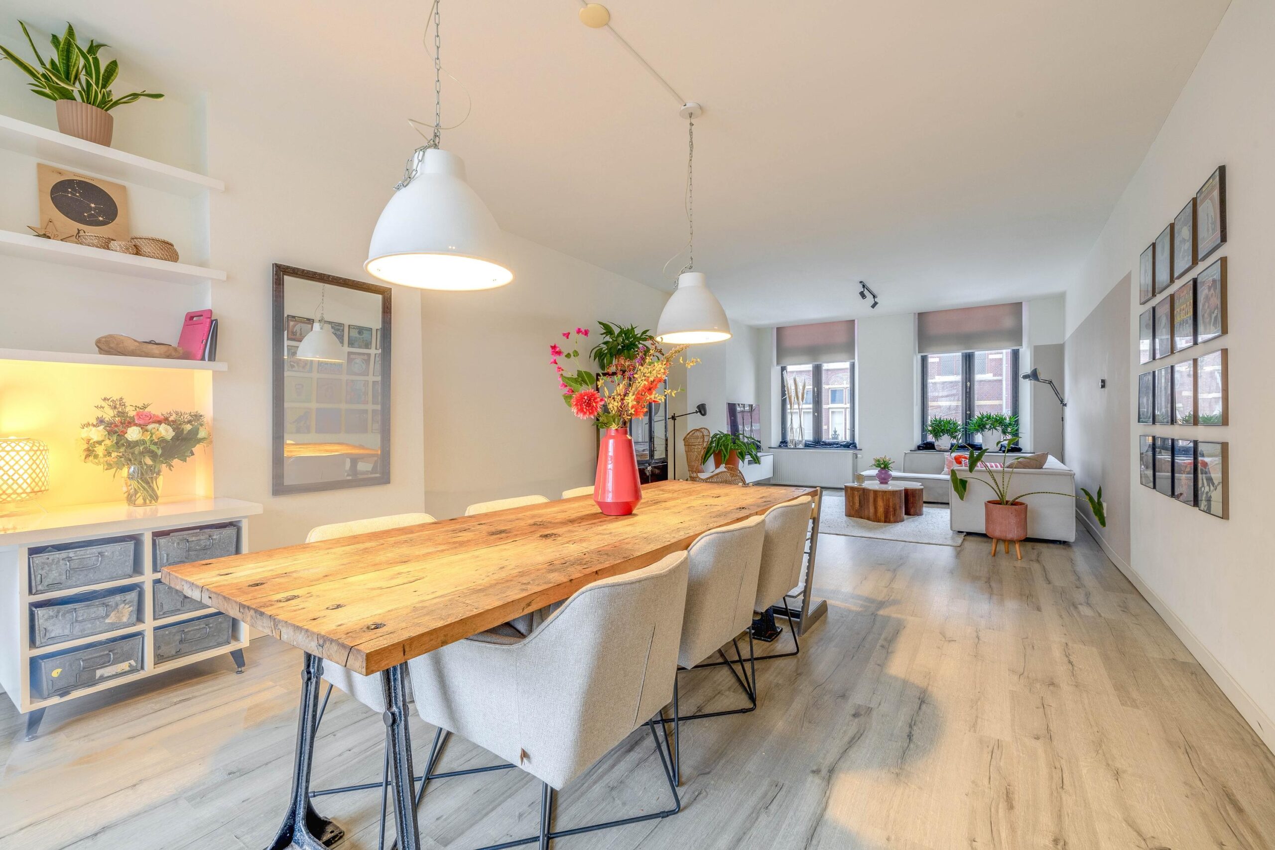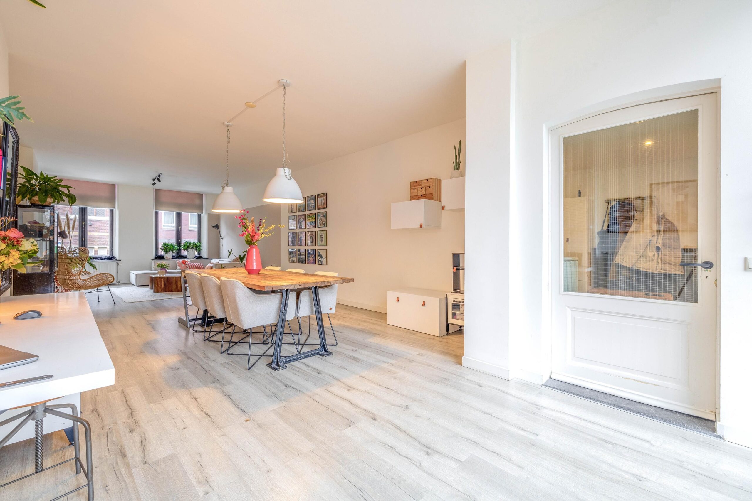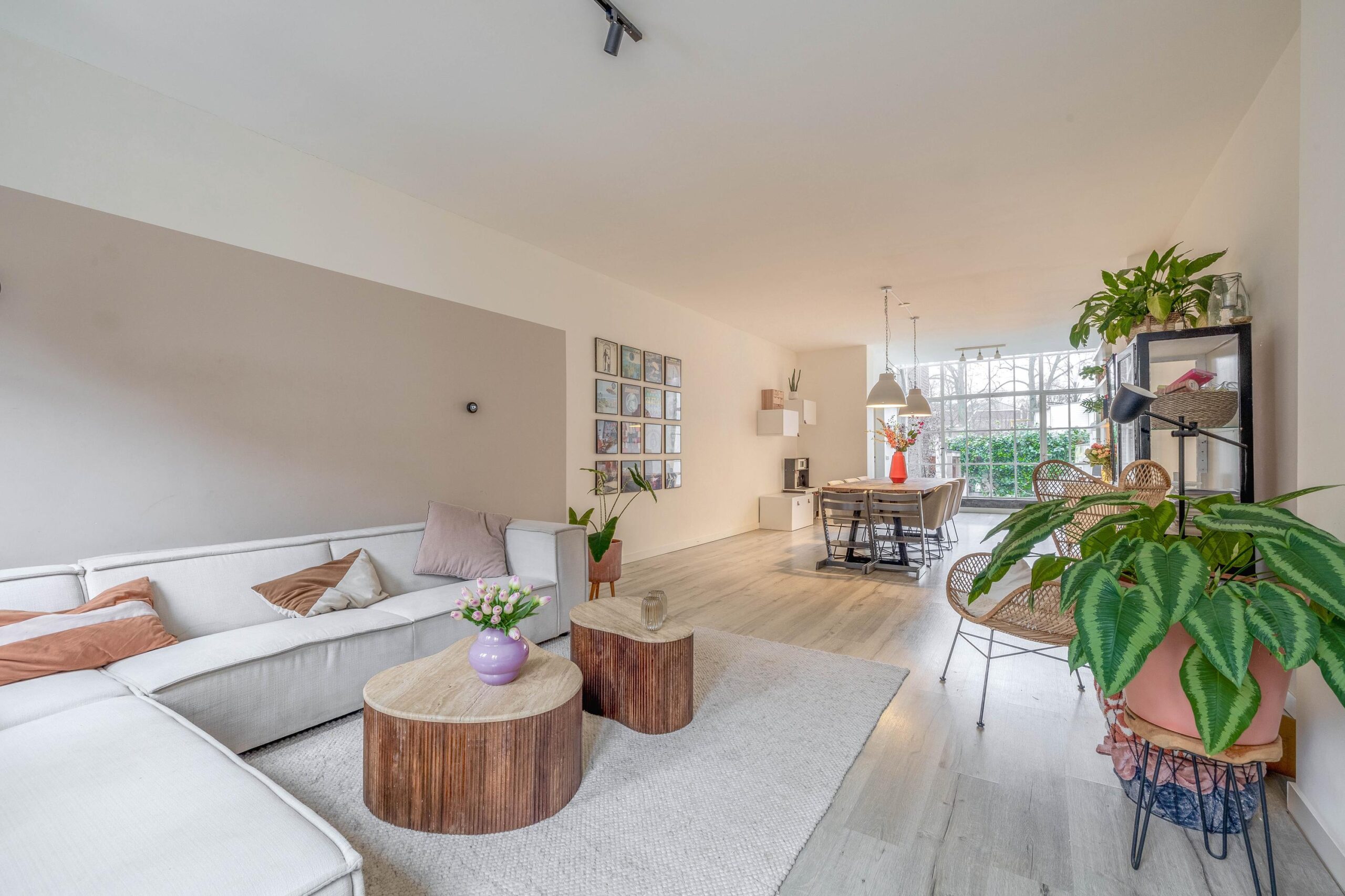 De royale woonkamer straalt luxe en ruimte uit dankzij de grote glazen pui die uitzicht biedt op je eigen stadstuin; een zeldzaamheid in de binnenstad. De keuken is helemaal van nu, volledig vernieuwd in 2023, en voorzien van elektrische vloerverwarming voor extra comfort.