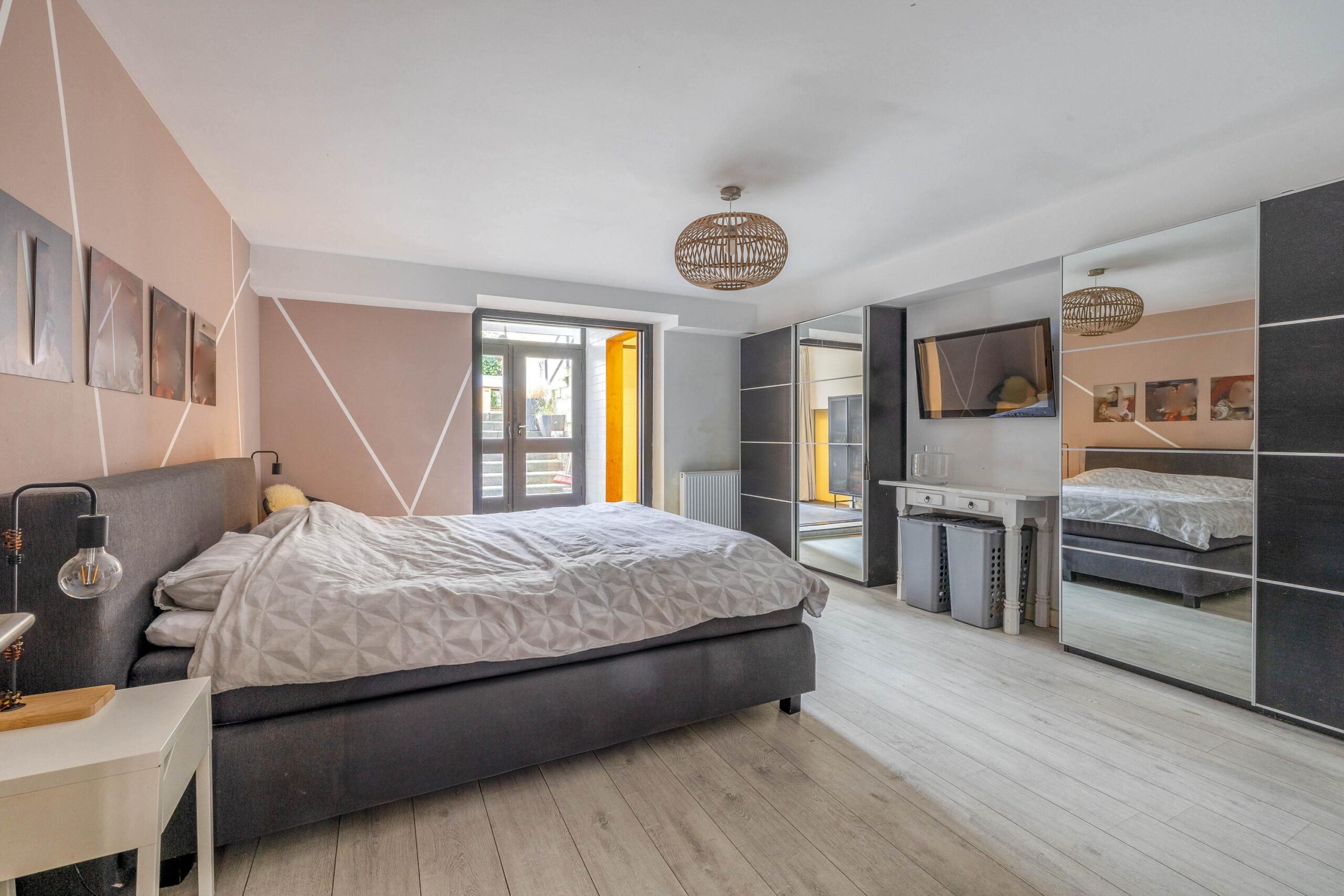 Slaapkamer 3 (ca. 22m²) ; dit is de grootste slaapkamer. Vanuit hier is een badkamer van ca. 3m² (met inloopdouche en wastafelmeubel) en-suite bereikbaar. Daarnaast bieden openslaande deuren toegang tot de tuin.