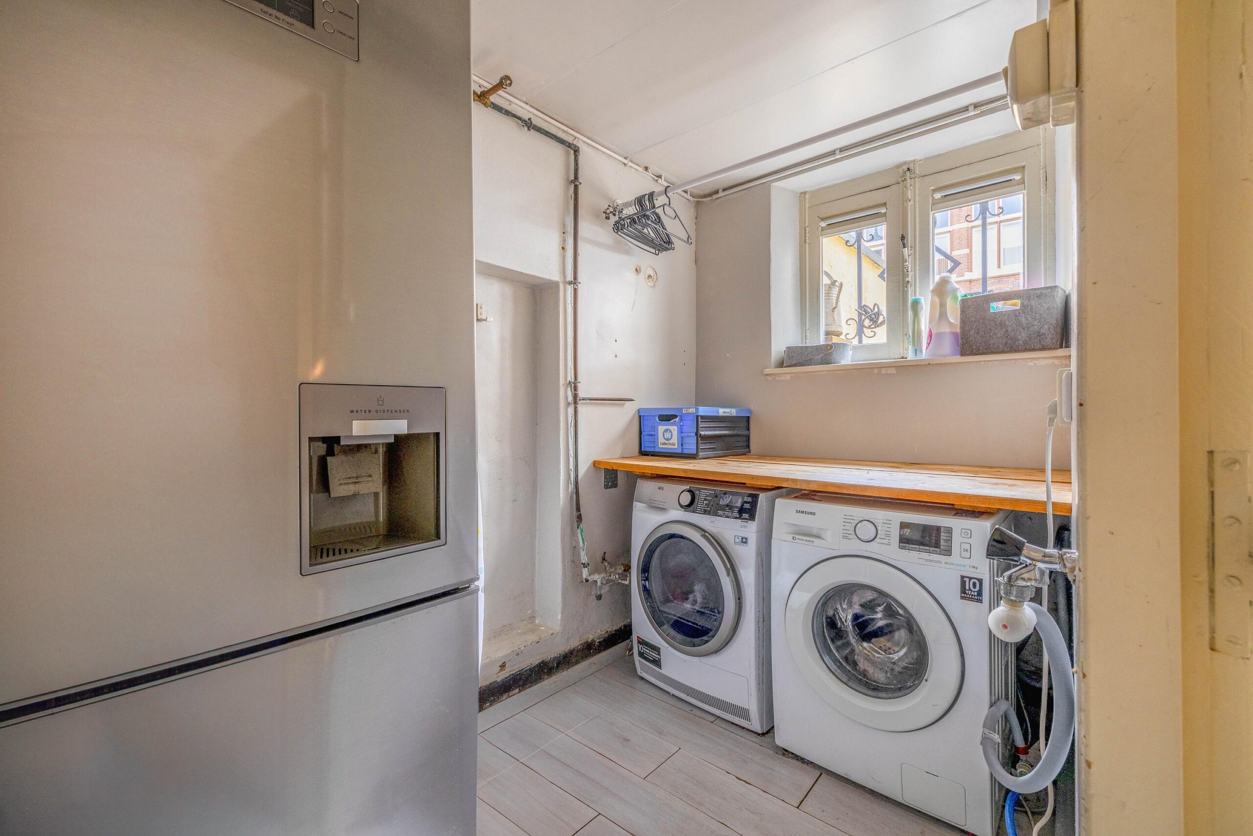 Slaapkamer 2 (ca. 11m²) ; voorzien van de meterkast. Vanuit hier is er toegang tot de bijkeuken/stookruimte (ca. 5m²) met cv-ketel, witgoedaansluiting en een raam.