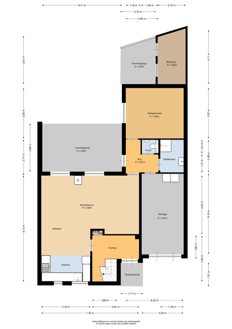 Vanuit de woonkamer biedt een hal met tegelvloer toegang tot de tuin door middel van een loopdeur. De garage (ca. 20m²) is voorzien van de witgoedaansluiting en openslaande deuren naar de oprit.