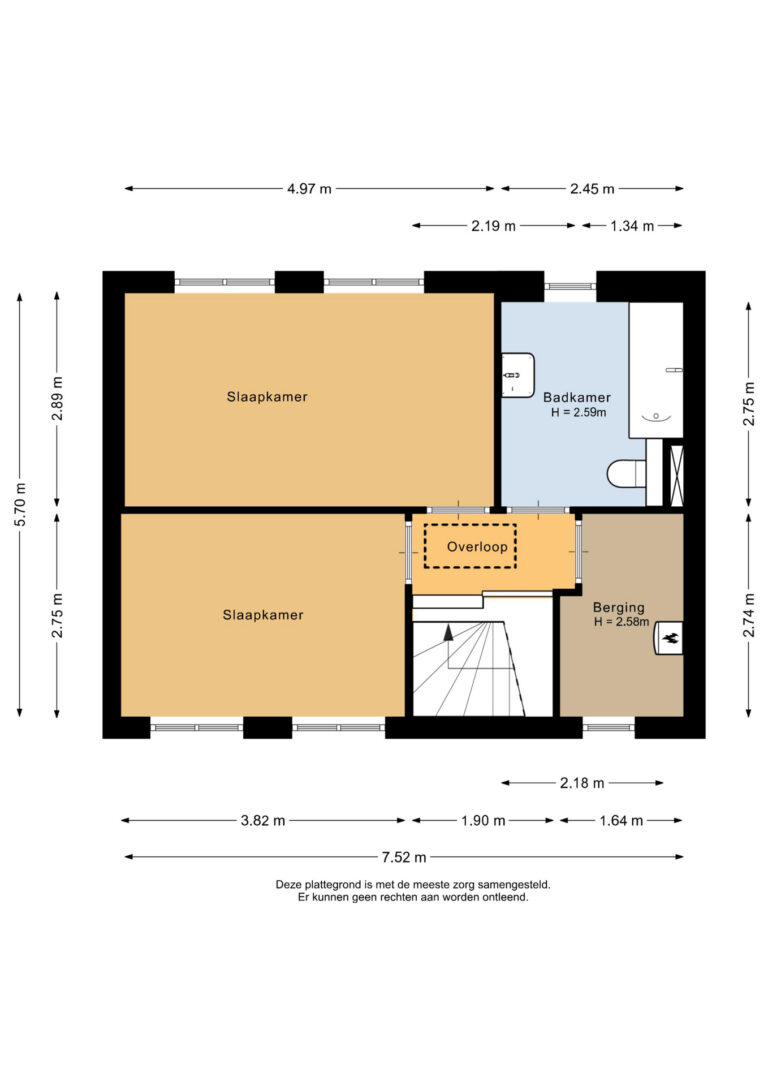 Vanuit de overloop zijn de berging, 2 slaapkamers en de badkamer bereikbaar.