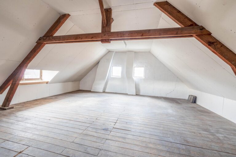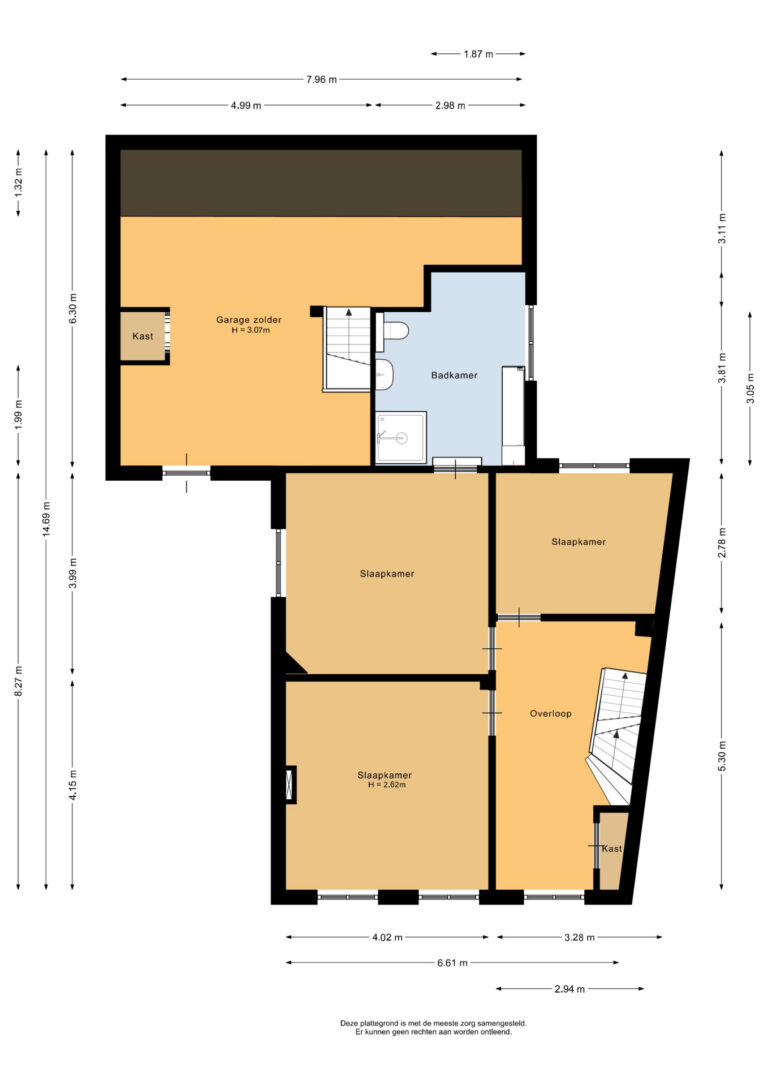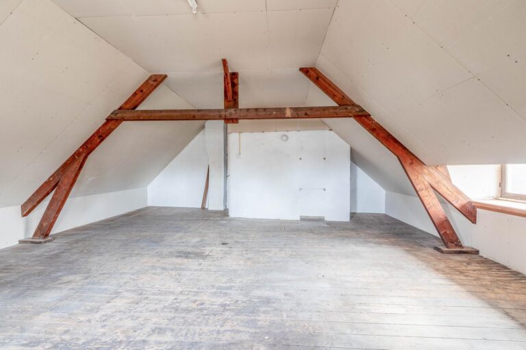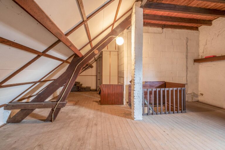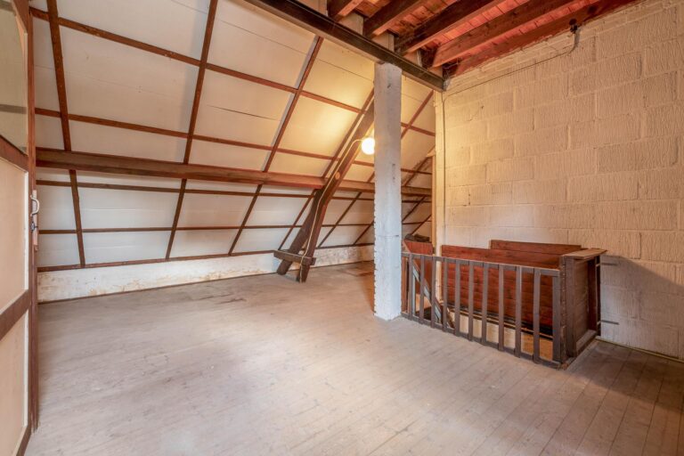 De grote zolder (ca. 29m²) boven de garage is bereikbaar door middel van een vaste trap. Deze zolder zou vanuit de badkamer op de 1ste verdieping doorgebroken kunnen worden.