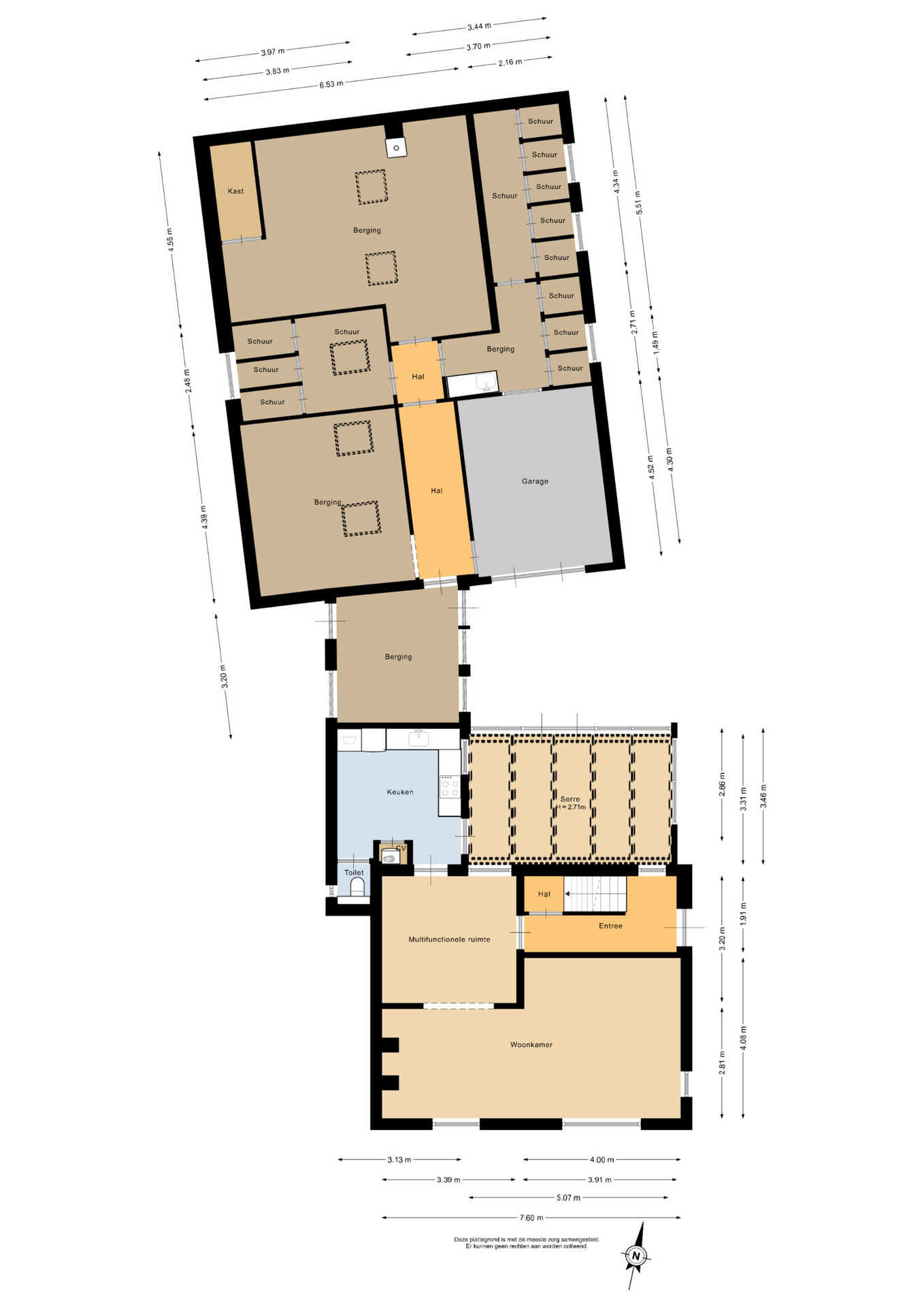 In de bergingen is elektra aanwezig. Het geheel bestaat uit 6 ruimtes. In een van de ruimtes is een klein keukenblok aanwezig.