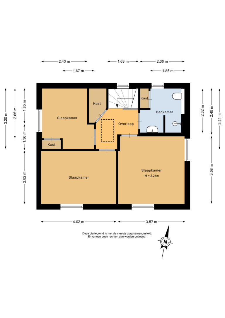 Op de overloop ligt een laminaatvloer en is een grote bergkast aanwezig. Het raam zorgt voor daglicht. Vanuit de overloop zijn de 3 slaapkamers en de badkamer bereikbaar.