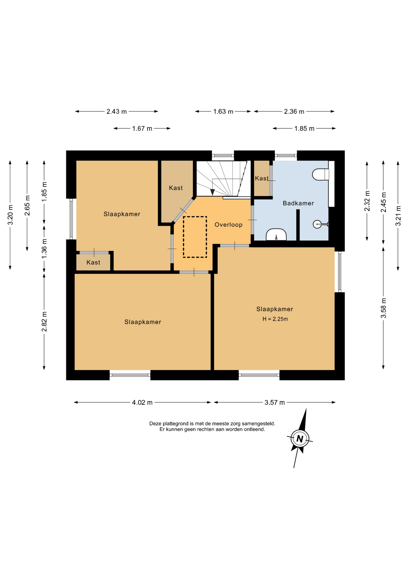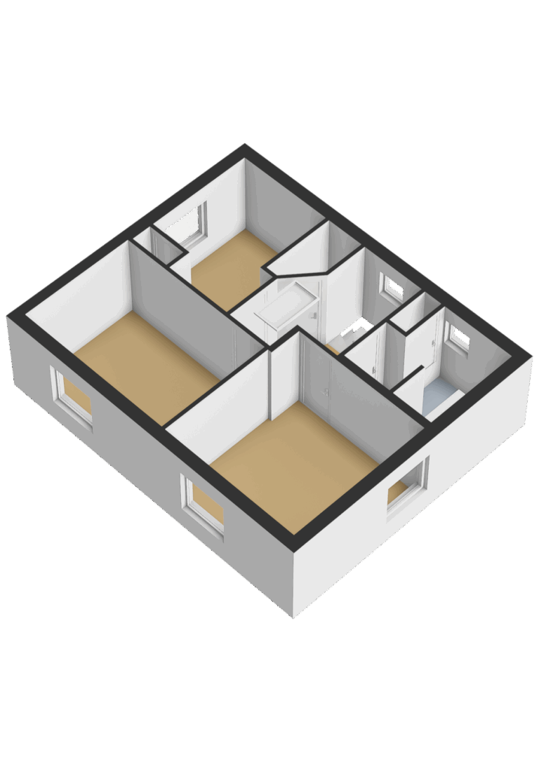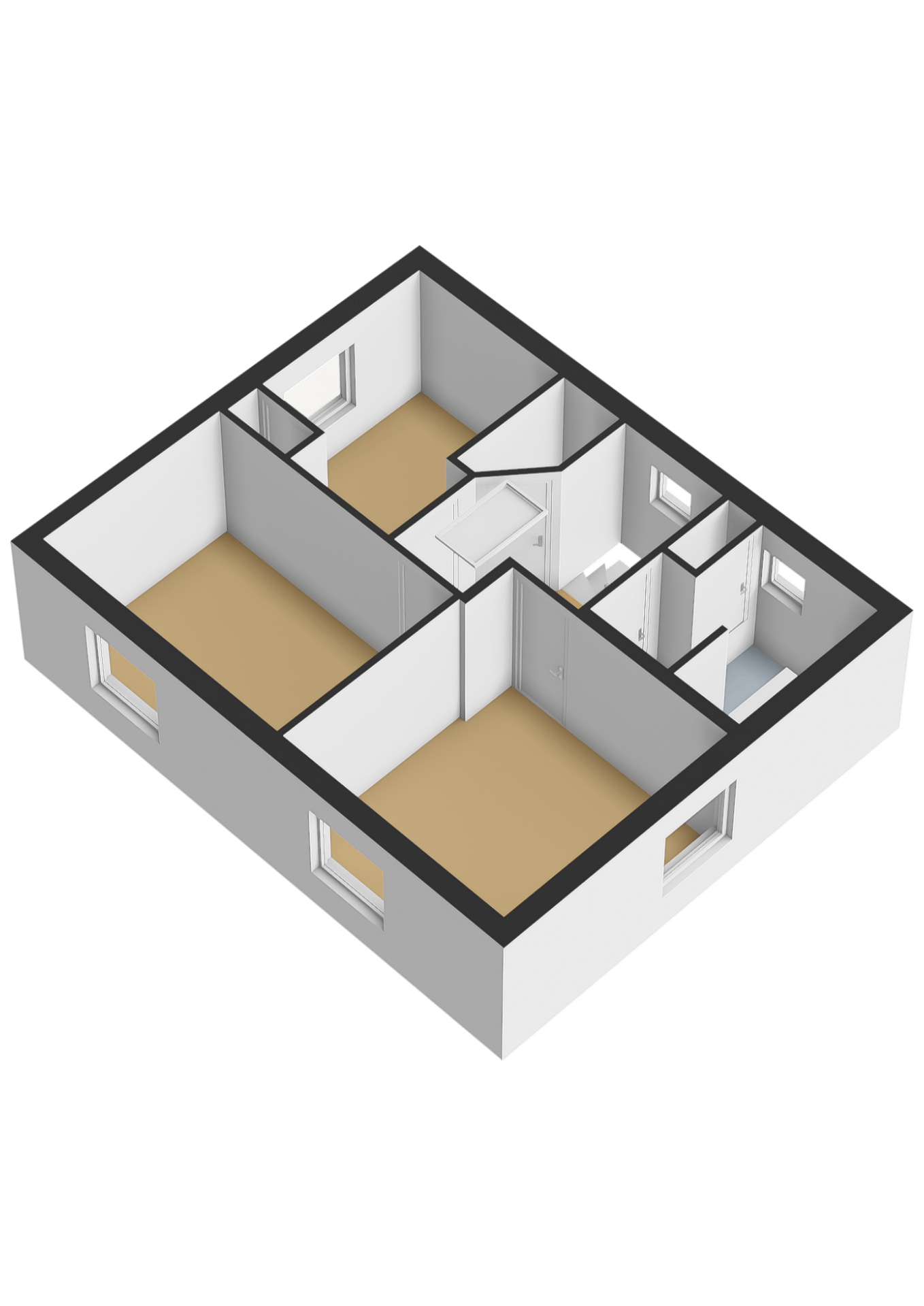 Alle slaapkamers zijn voorzien van een laminaatvloer. Eén slaapkamer heeft een muurkast. In de geheel betegelde badkamer zijn een inloopdouche, wastafelmeubel, toilet en muurkast aanwezig. Het raam zorgt voor daglicht en tevens natuurlijke ventilatie.