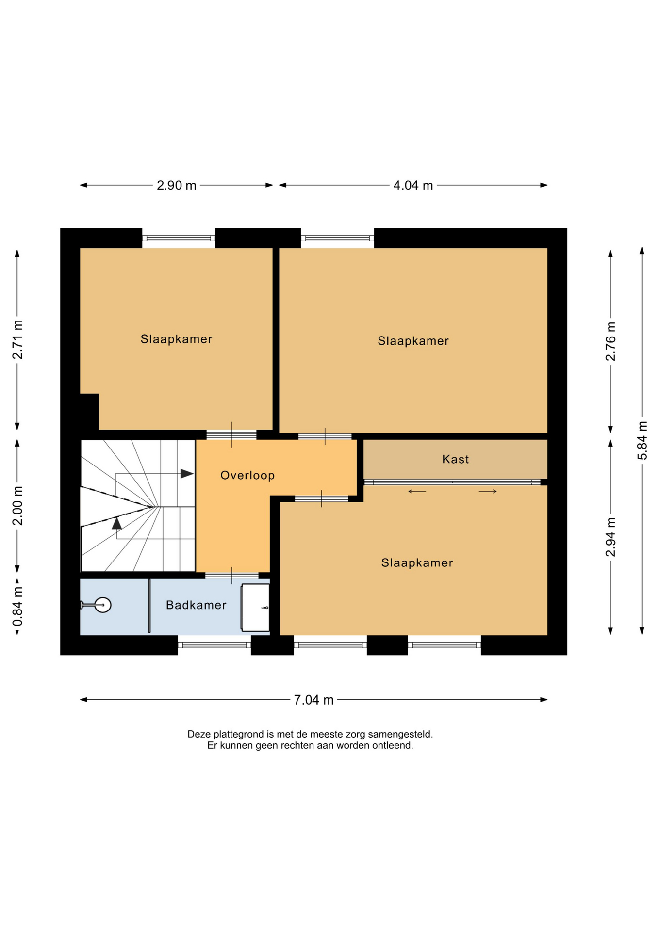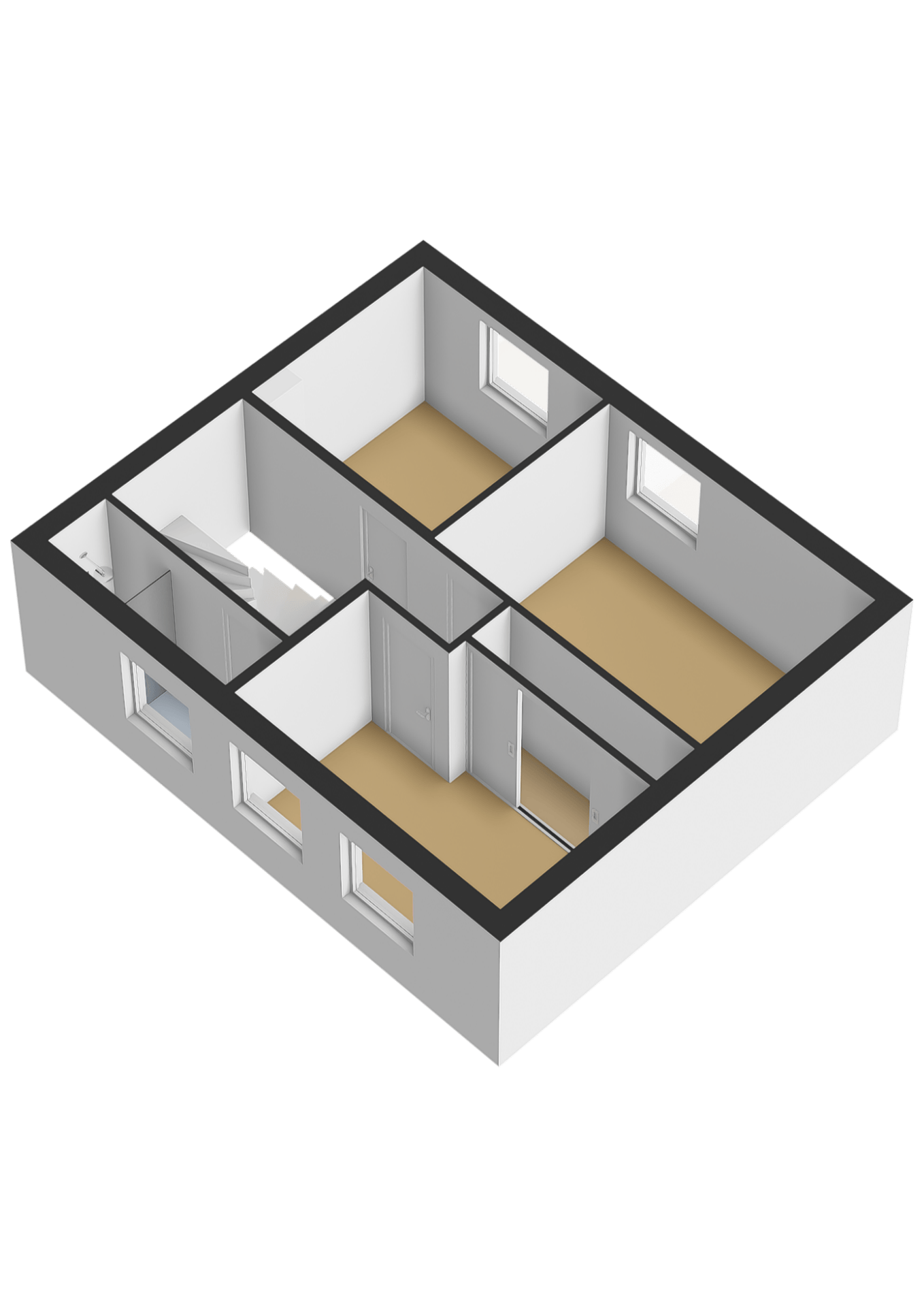 De overloop biedt toegang tot de drie slaapkamers en de badkamer.
