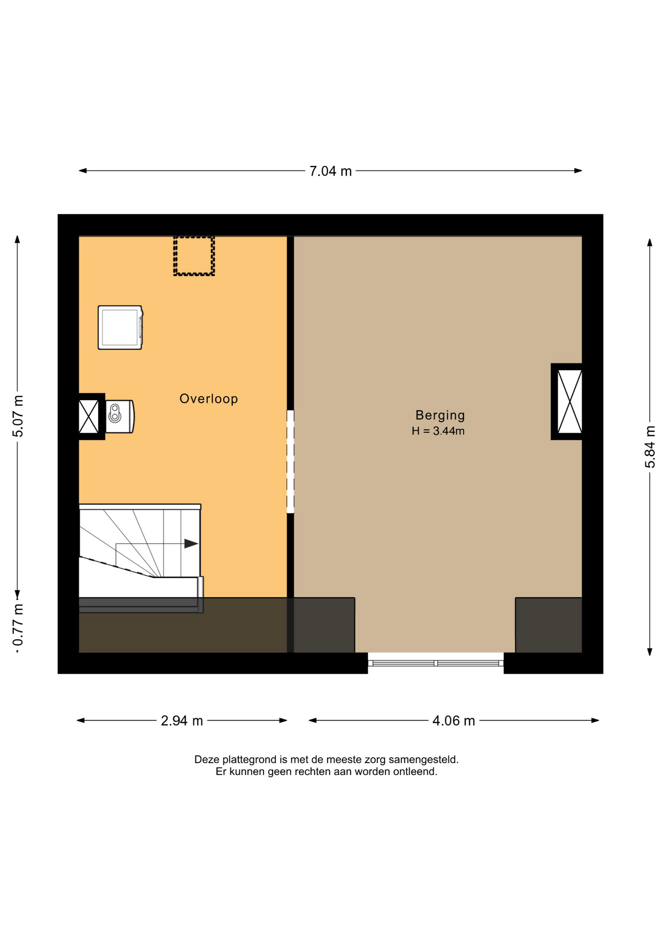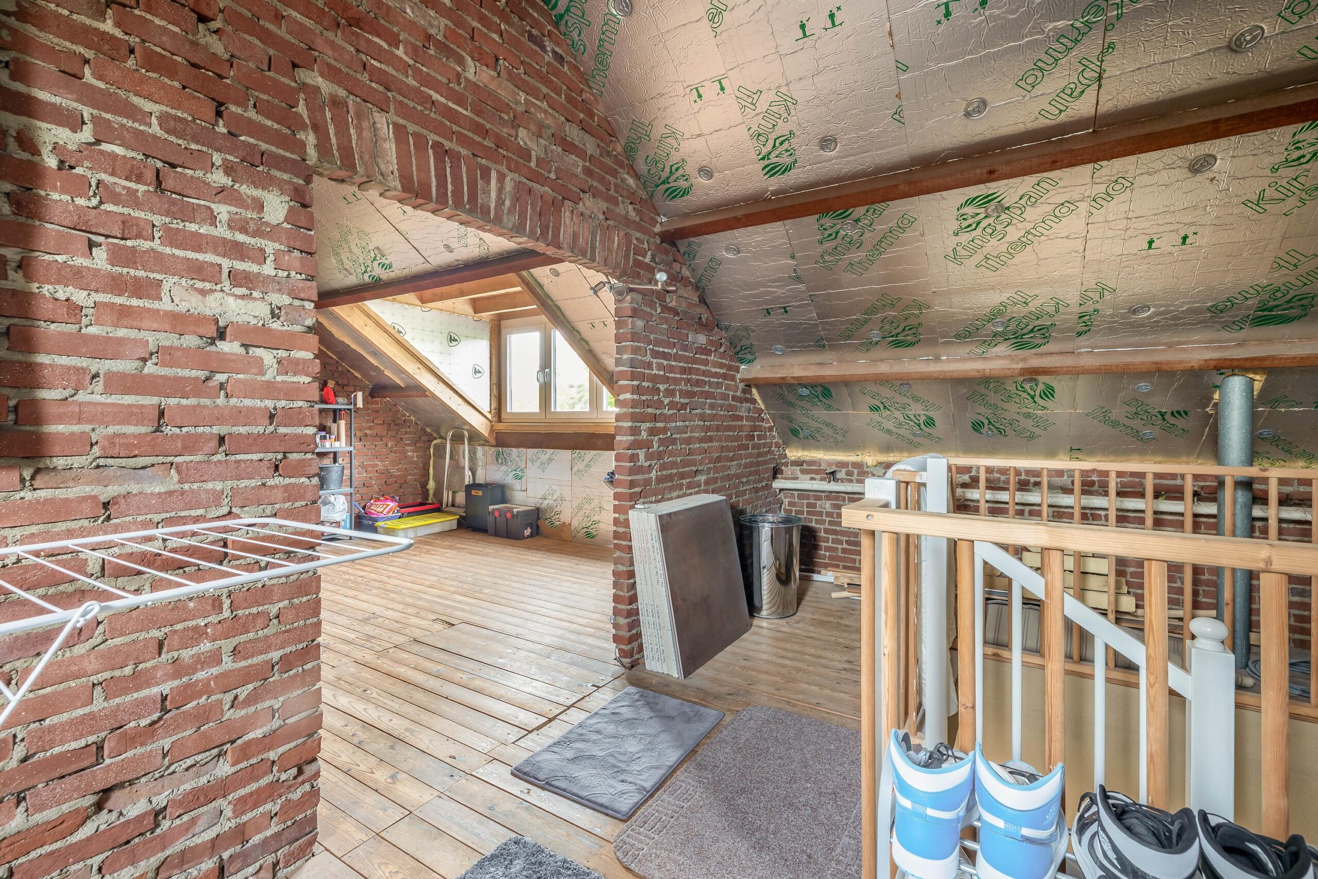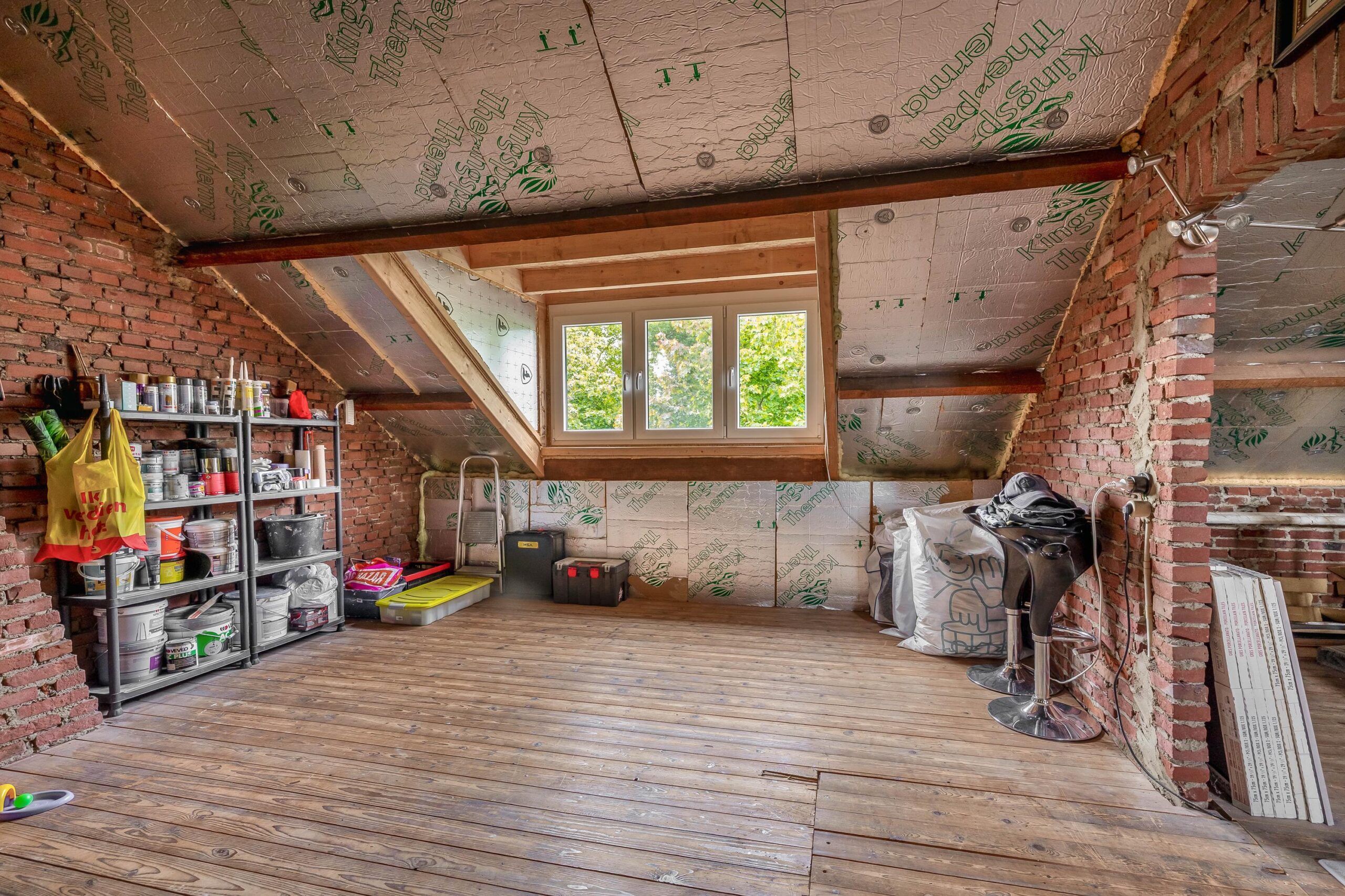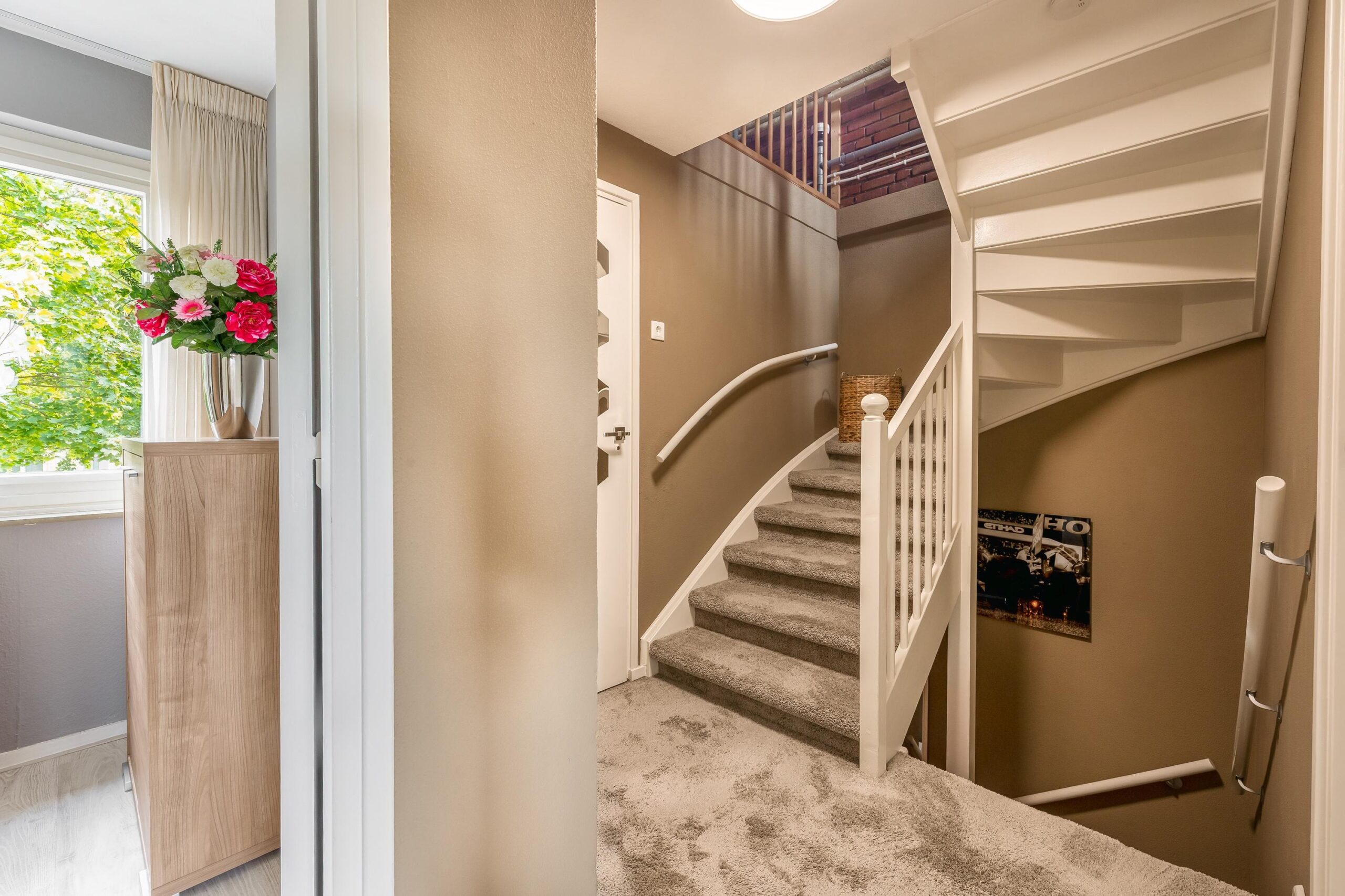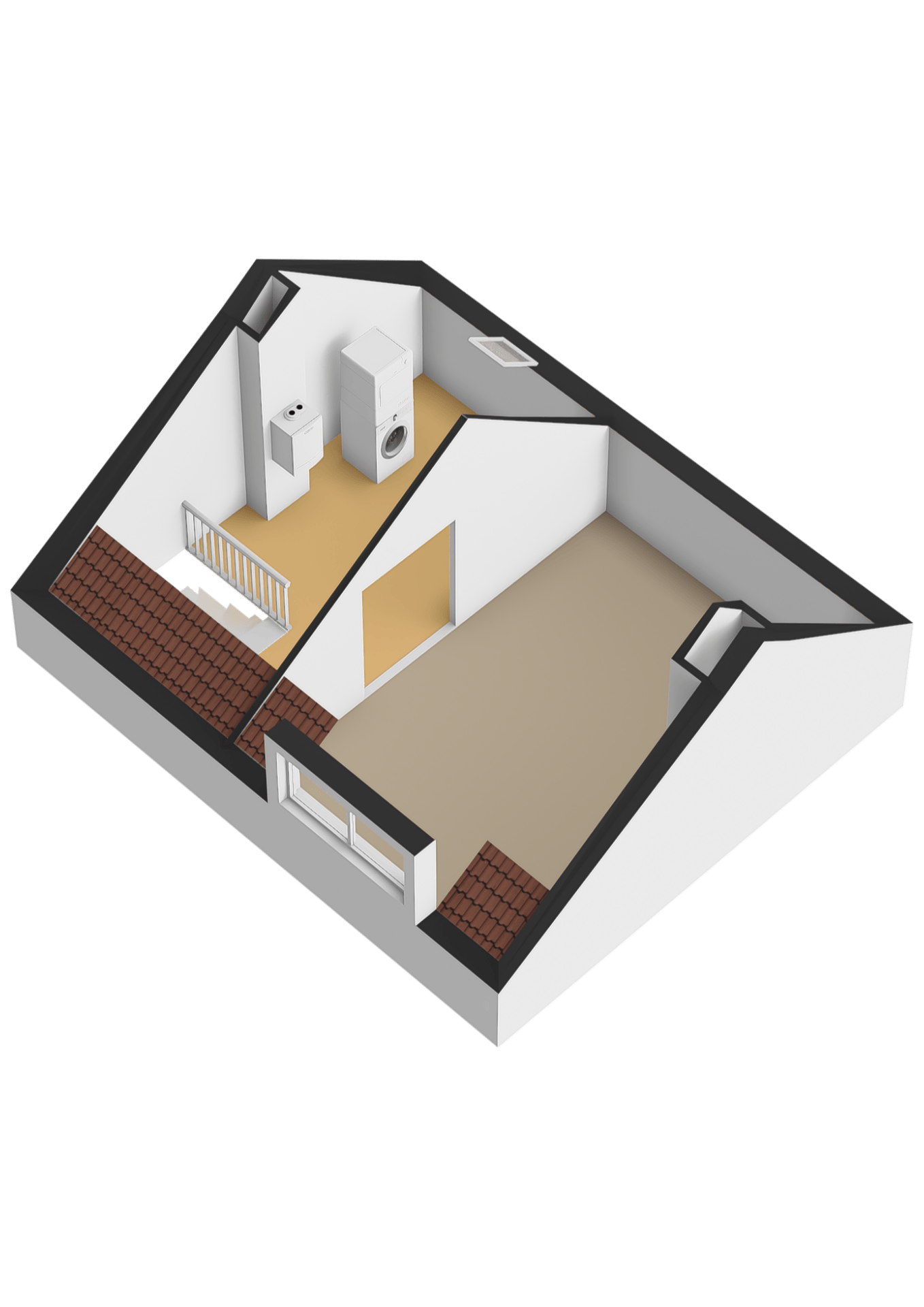 De vaste trap biedt toegang tot de tweede verdieping. De grote overloop is voorzien van een Velux dakraam, de cv-ketel en de witgoedaansluiting.