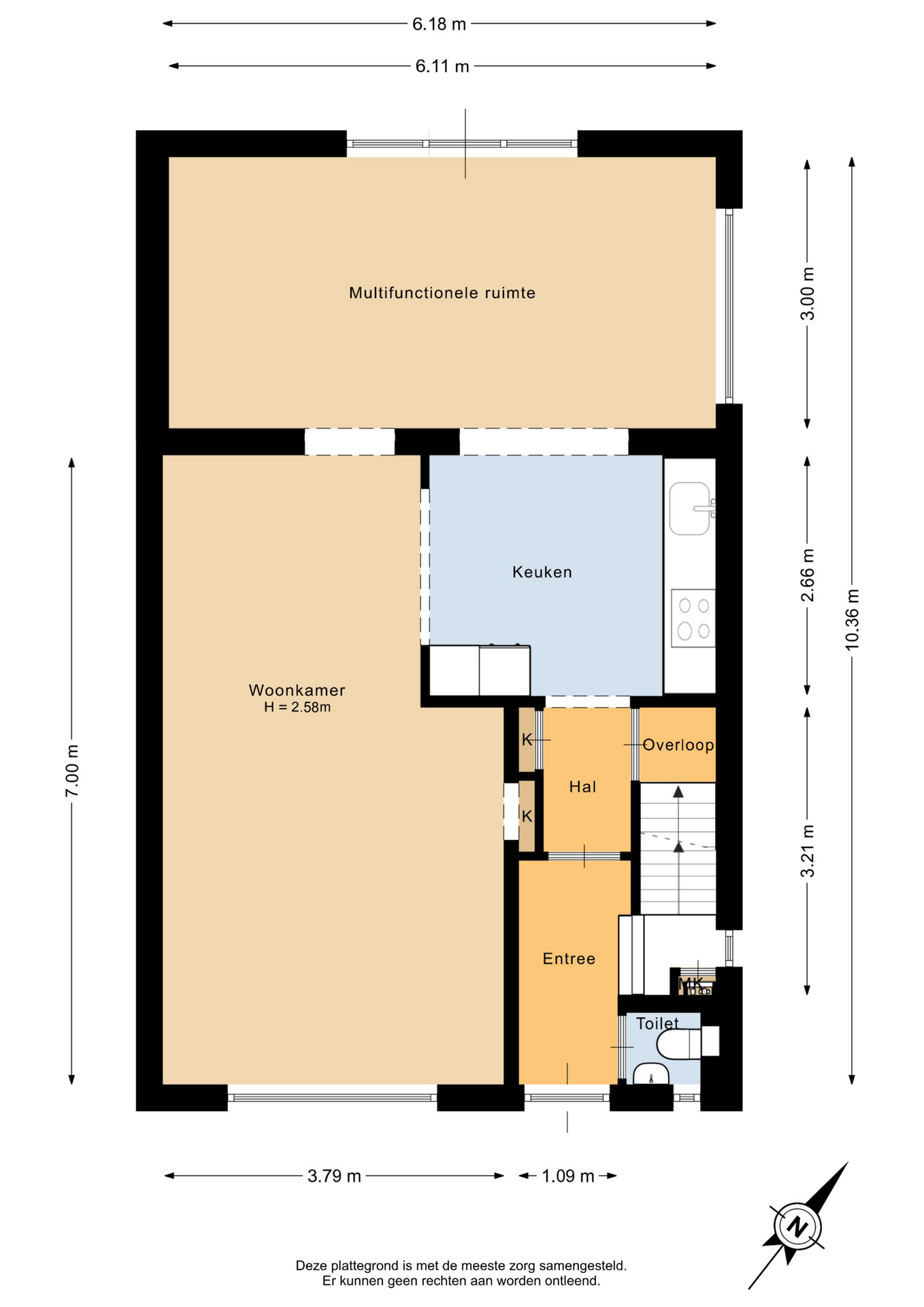 – Kunststof kozijnen met dubbel glas met uitzondering van het raam bij de trap naar de 1ste verdieping.