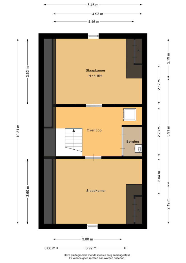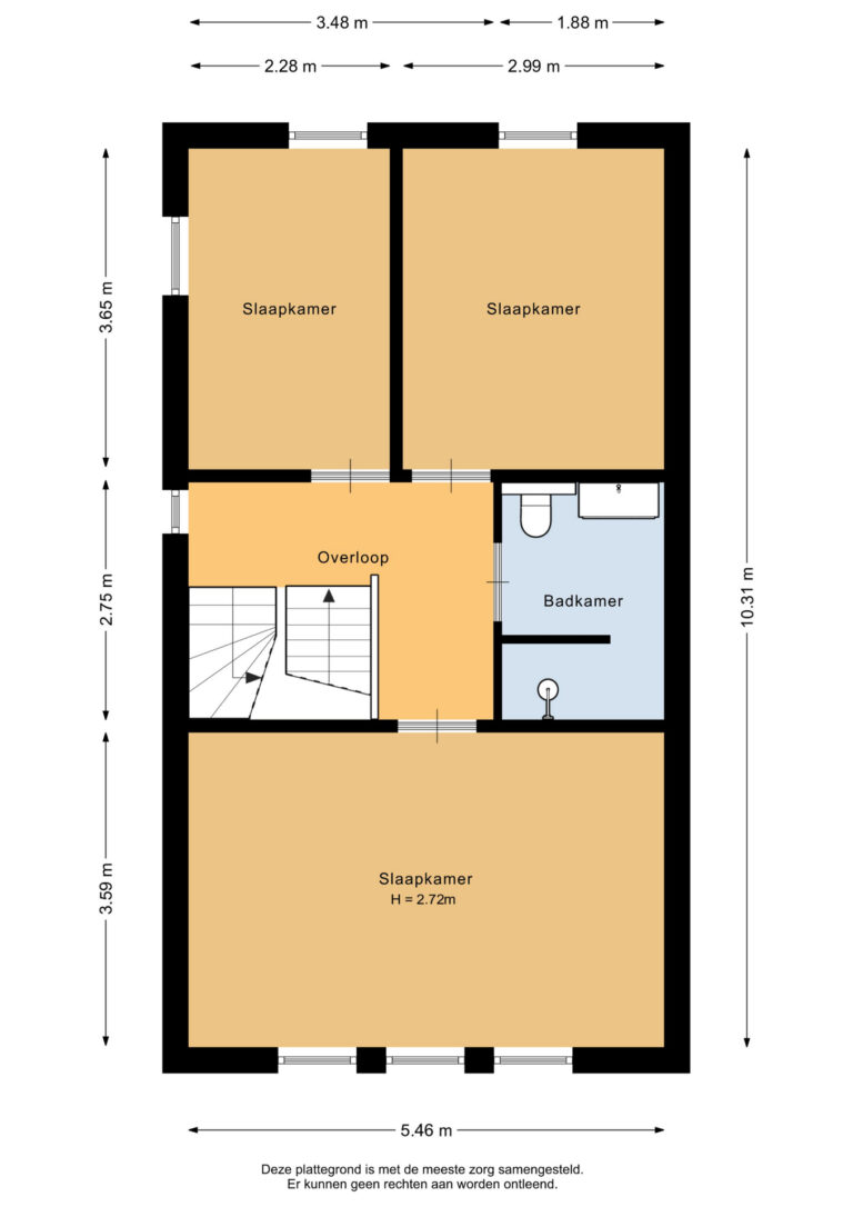 De overloop biedt toegang tot de twee ruime slaapkamers. Zowel de slaapkamers als de overloop zijn ook hier voorzien van een laminaatvloer.
