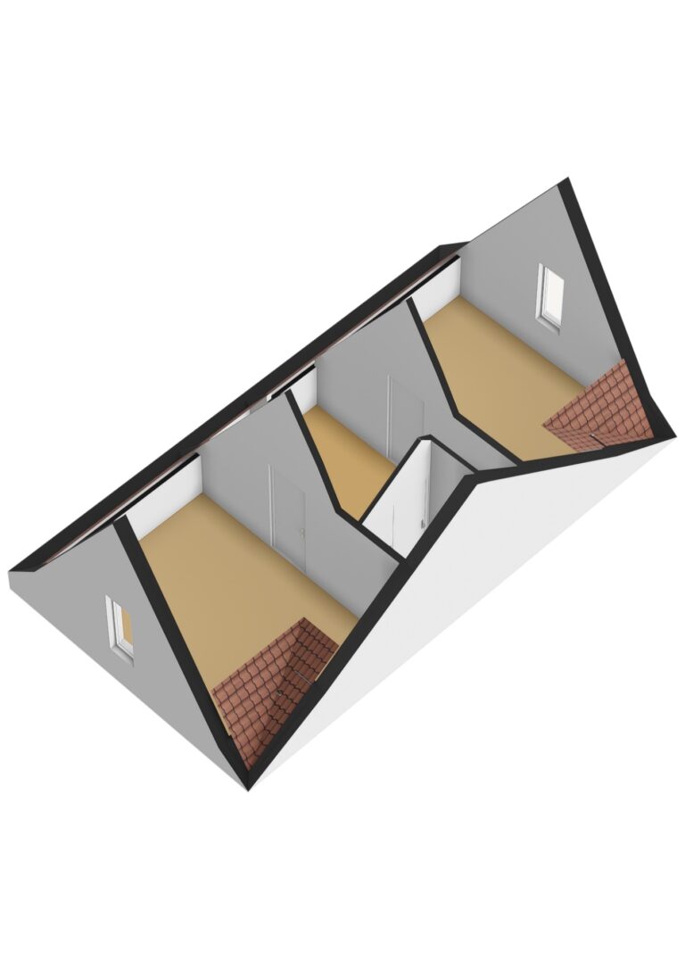 De tweede verdieping is bereikbaar door middel van de vaste trap. Op de overloop zijn een airco, de witgoedaansluiting, de cv-ketel en de omvormer van de zonnepanelen aanwezig.