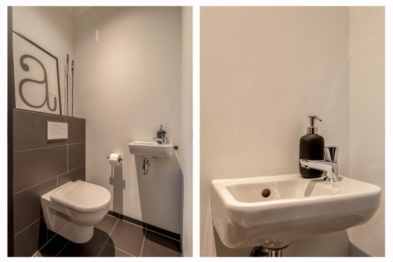 In de hal zijn de meterkast, een trapkast en het toilet met fonteintje aanwezig.
