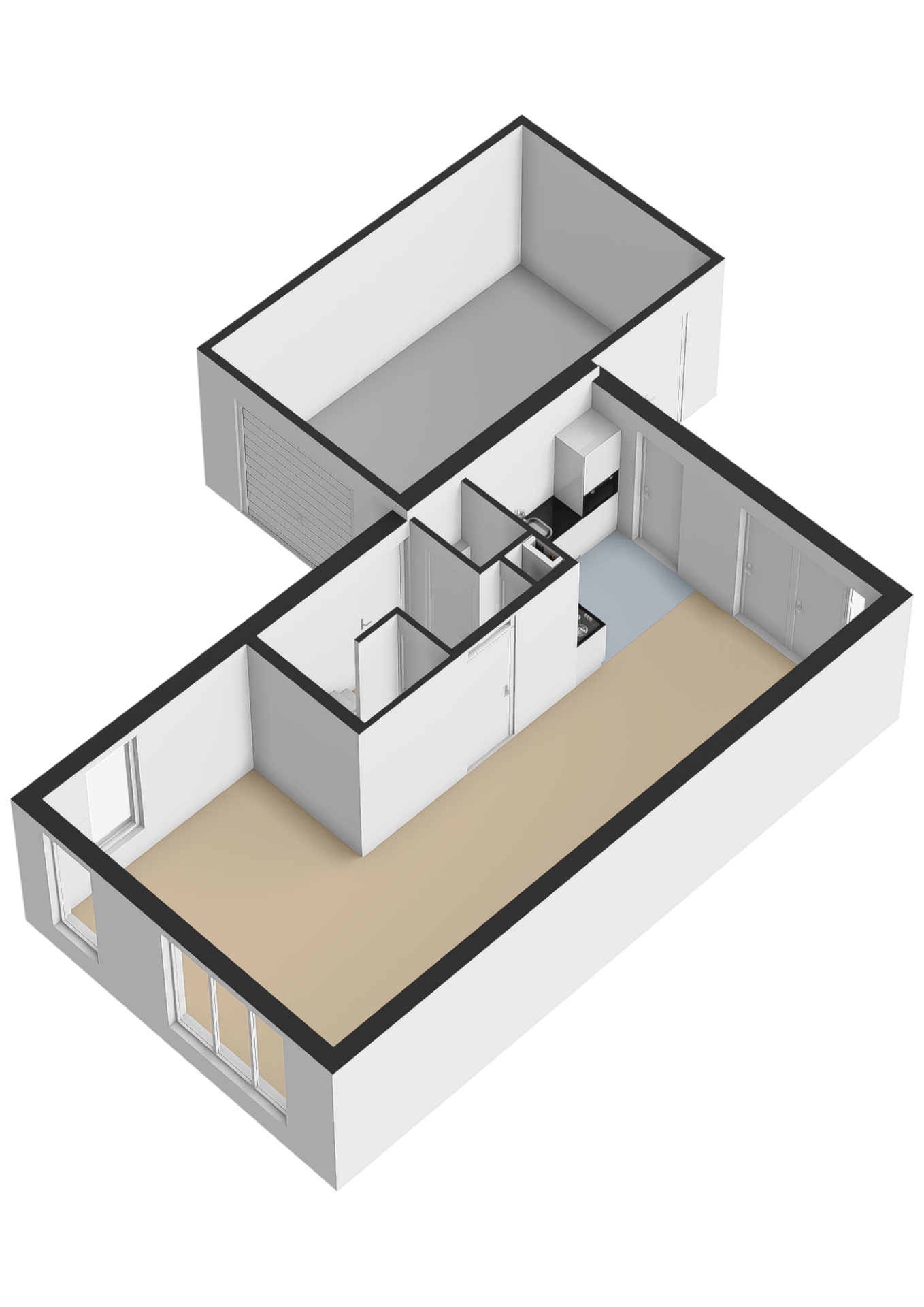 De grote garage heeft een openslaande deuren richting de oprit. Water en elektra is aanwezig. De garage kan eventueel gebruikt worden om bijvoorbeeld de keuken uit te bouwen tot leefkeuken.