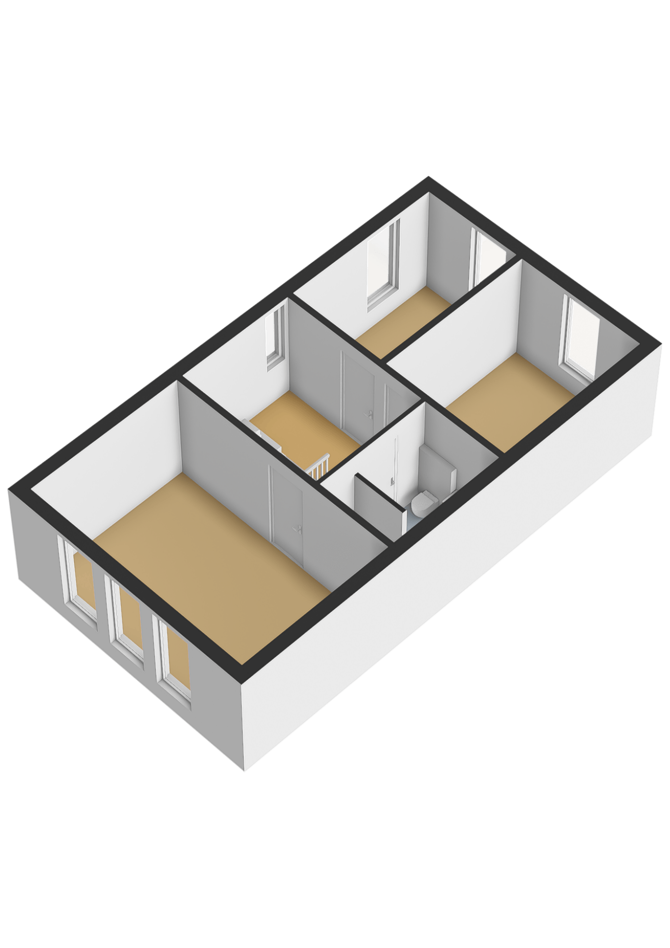 De overloop biedt toegang tot de twee ruime slaapkamers. Zowel de slaapkamers als de overloop zijn ook hier voorzien van een laminaatvloer.