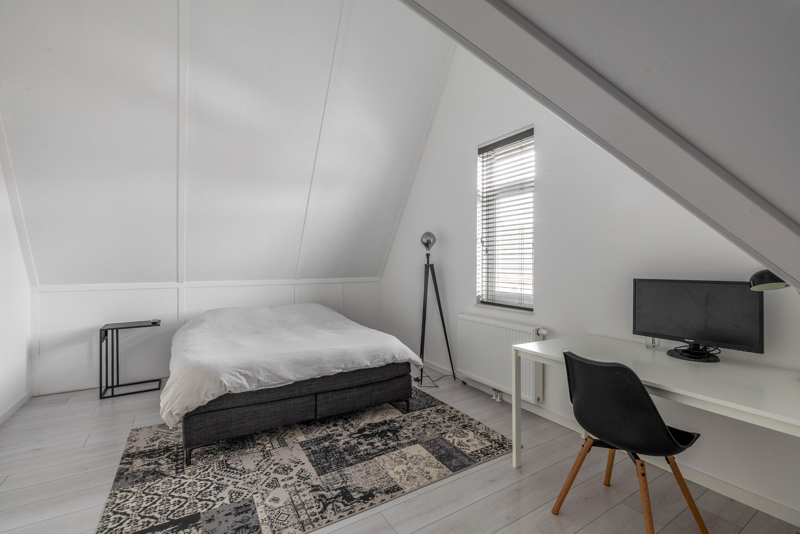 De tweede verdieping is bereikbaar door middel van de vaste trap. Op de overloop zijn een airco, de witgoedaansluiting, de cv-ketel en de omvormer van de zonnepanelen aanwezig.