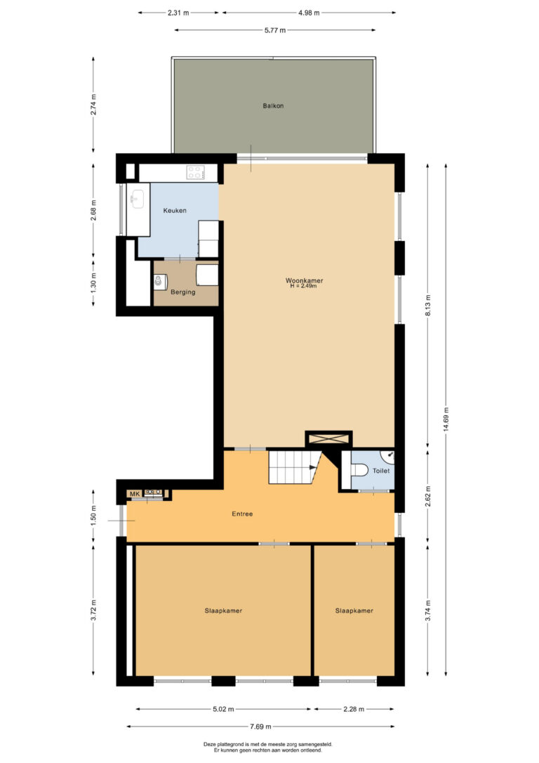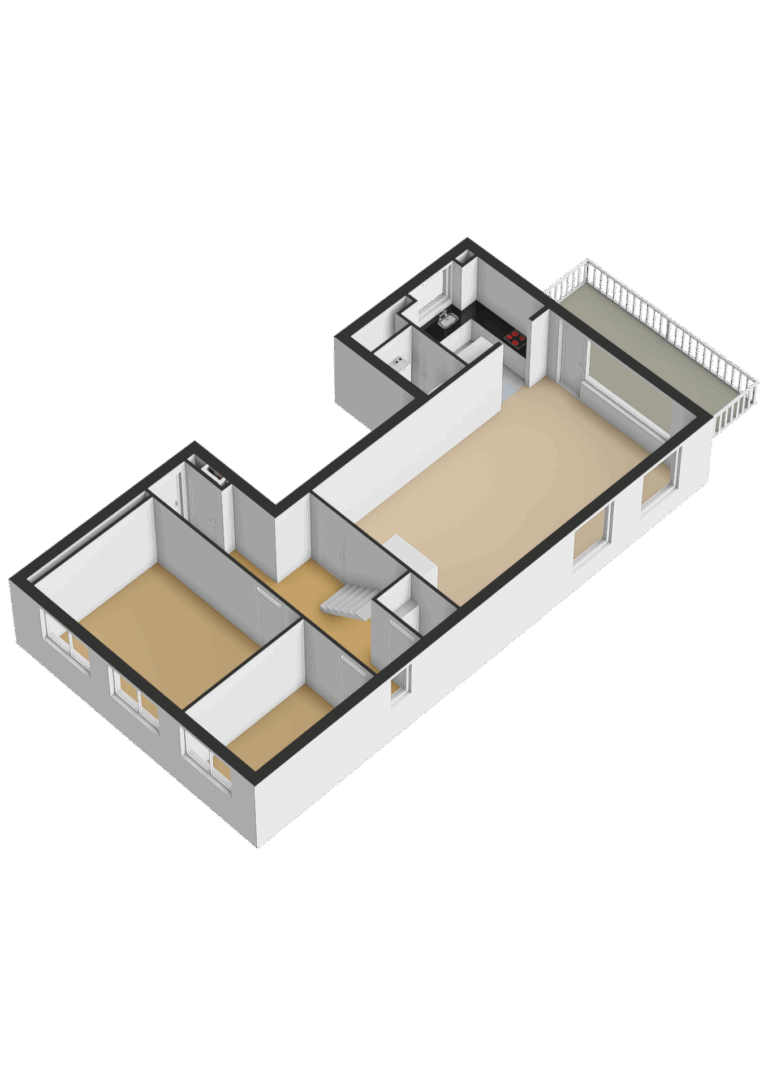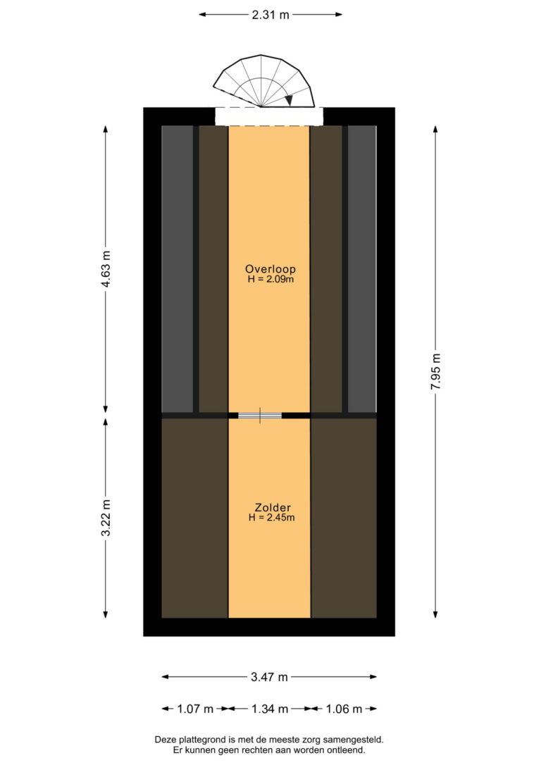 – De woonoppervlakte is exclusief de zolderruimte/vide.