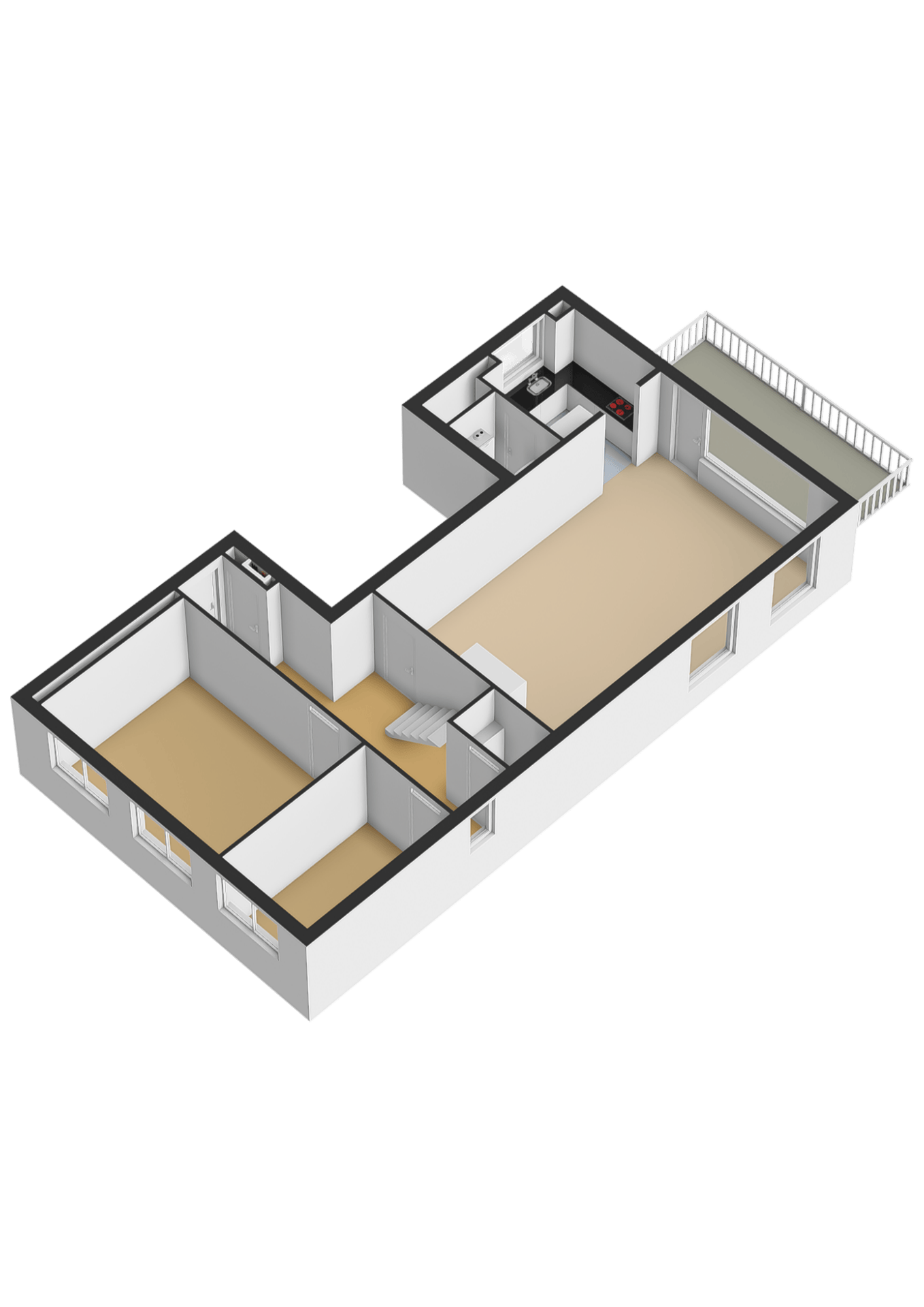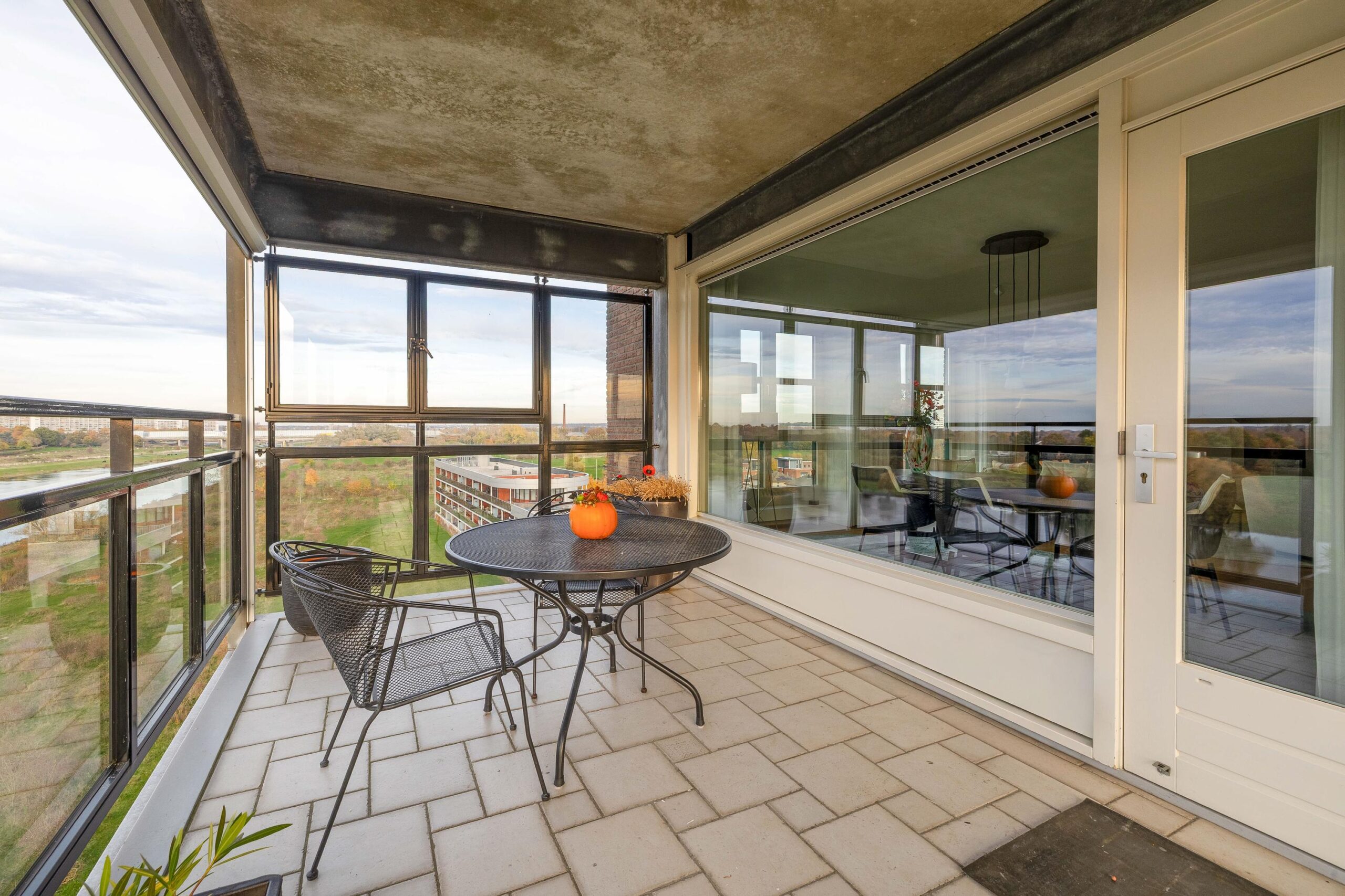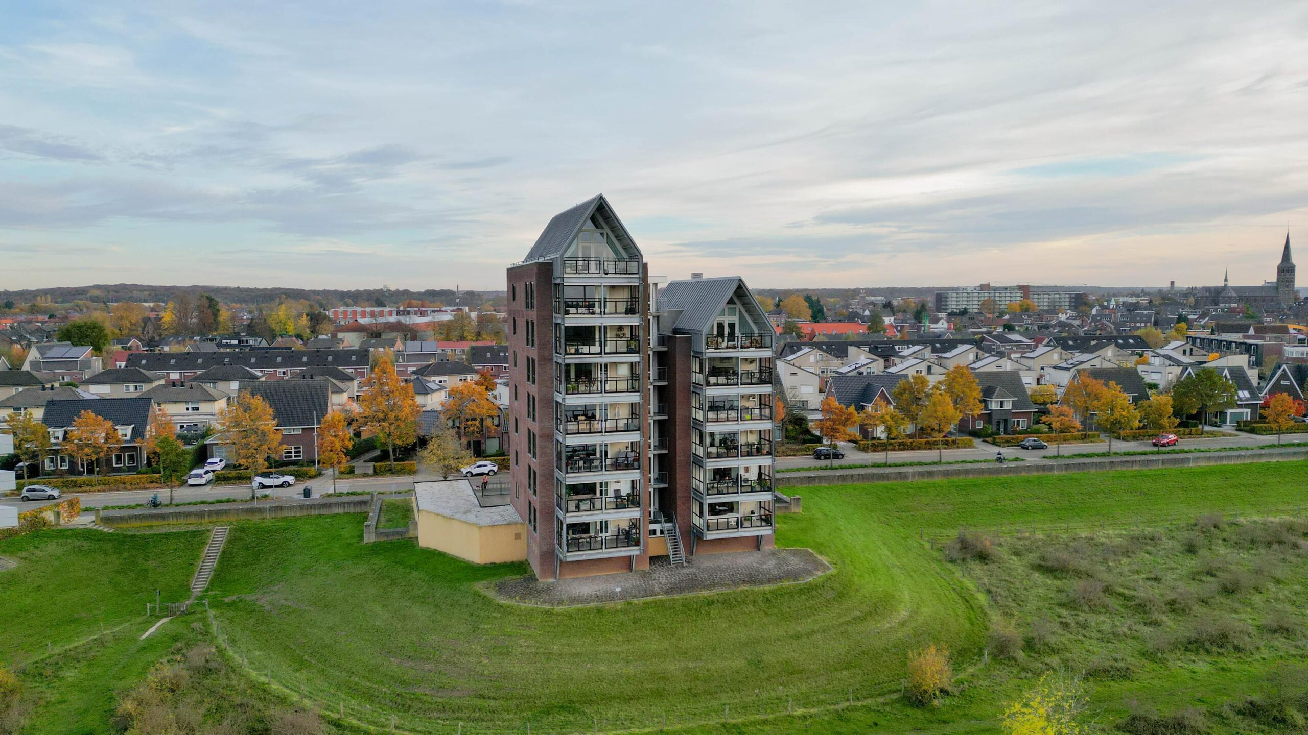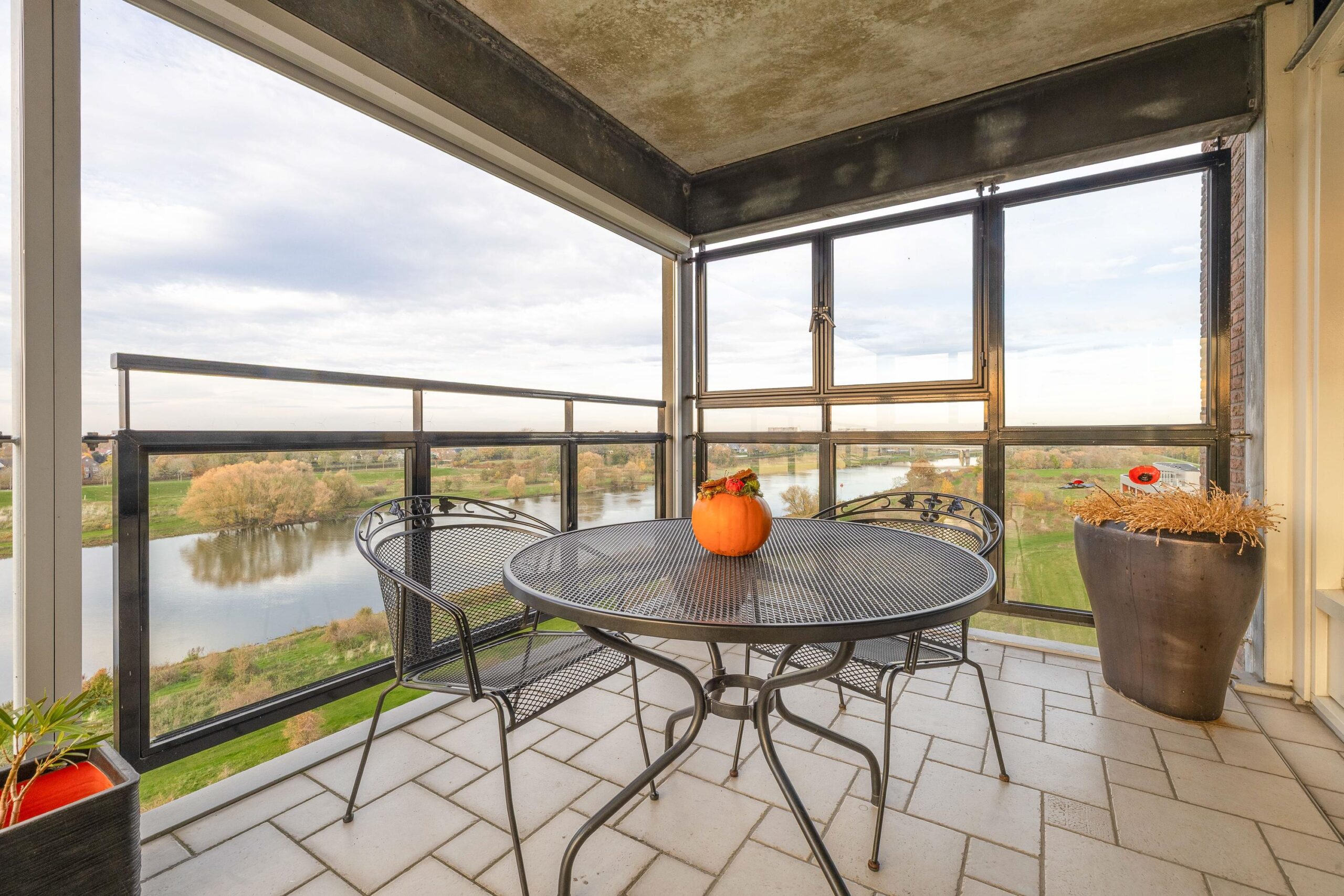 Naast het grote terras is er via de badkamer nog een omloop bereikbaar. Deze loopt in een u-vorm rondom het appartement. Vanuit hier is er een weids en prachtig uitzicht over de Maas en het centrum van Tegelen. Je geniet er de hele dag door van de zon.