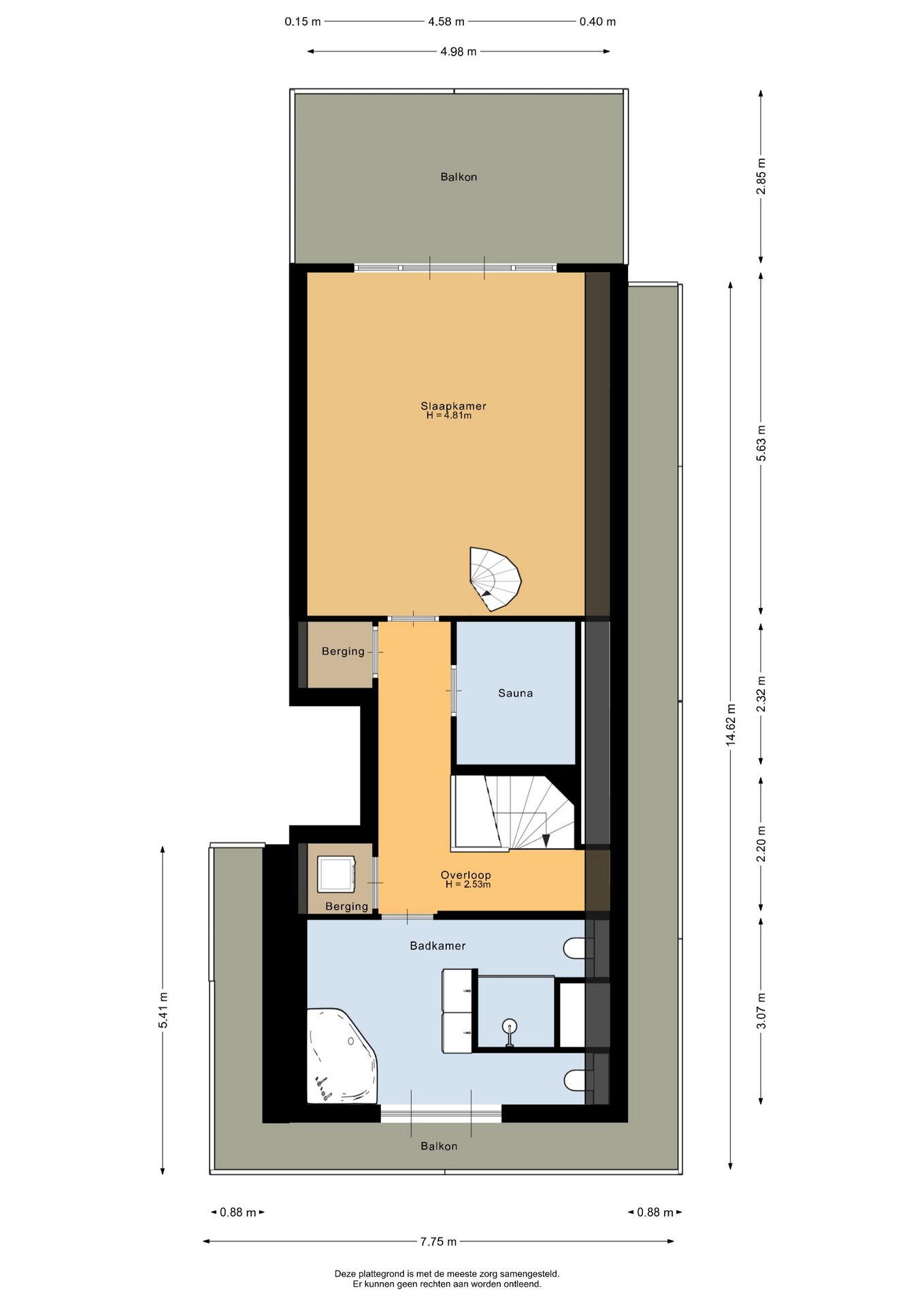 – De woonoppervlakte is exclusief de zolderruimte/vide.