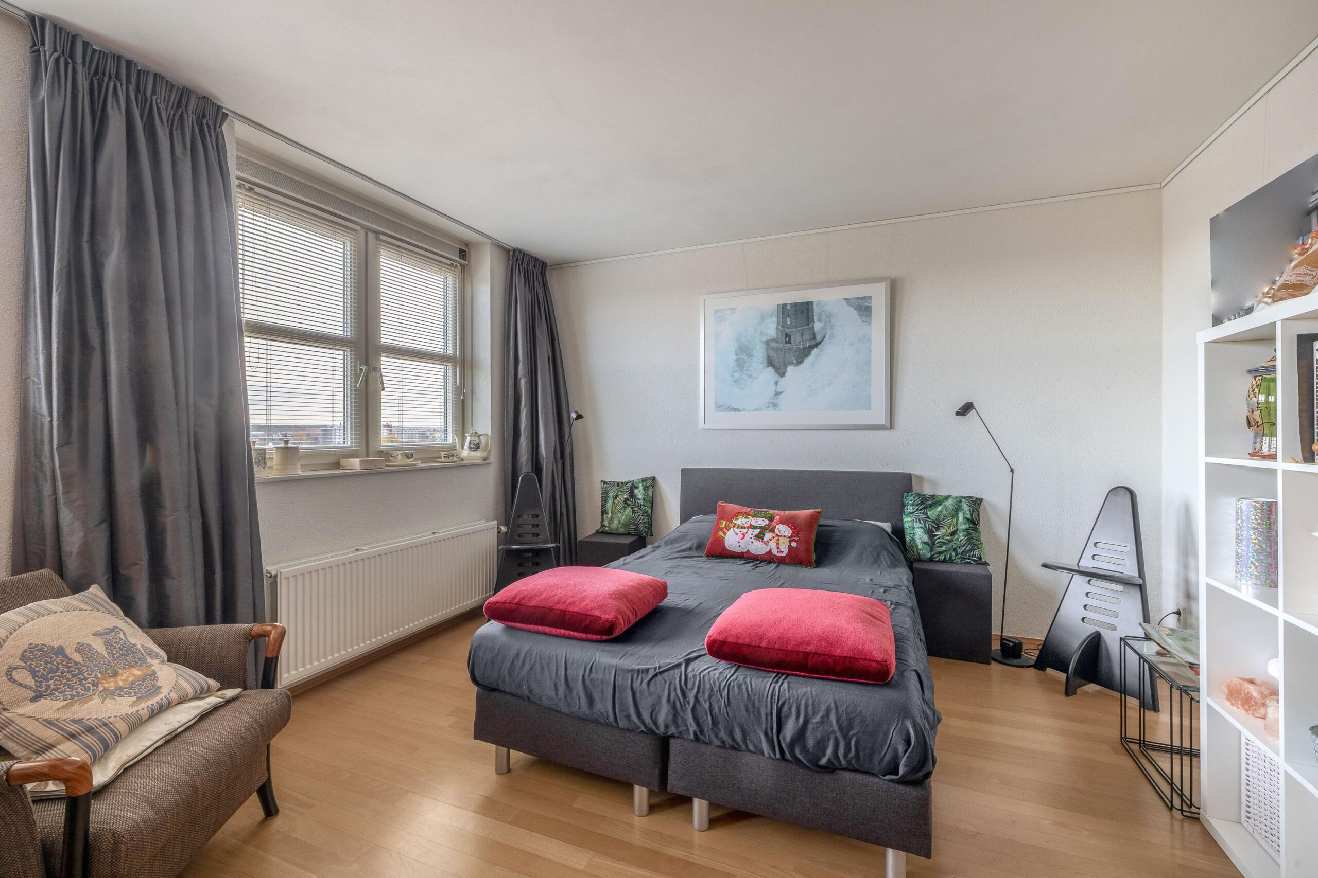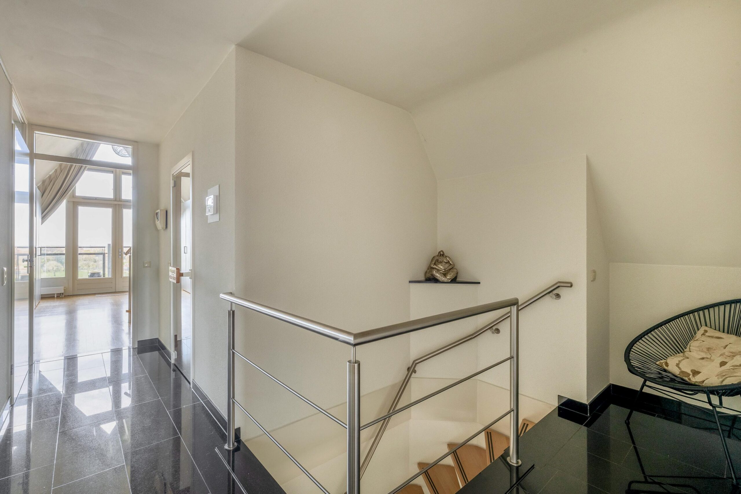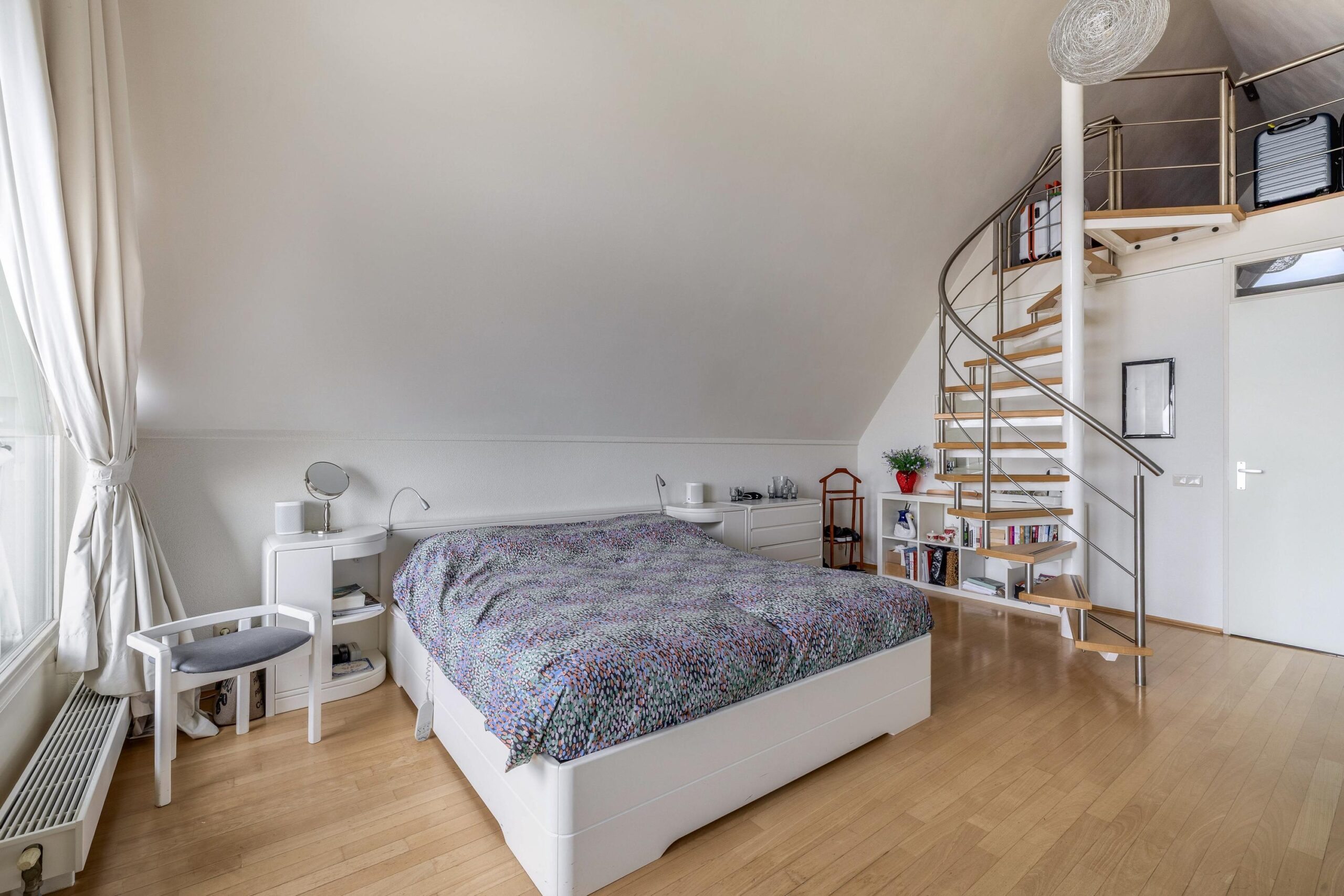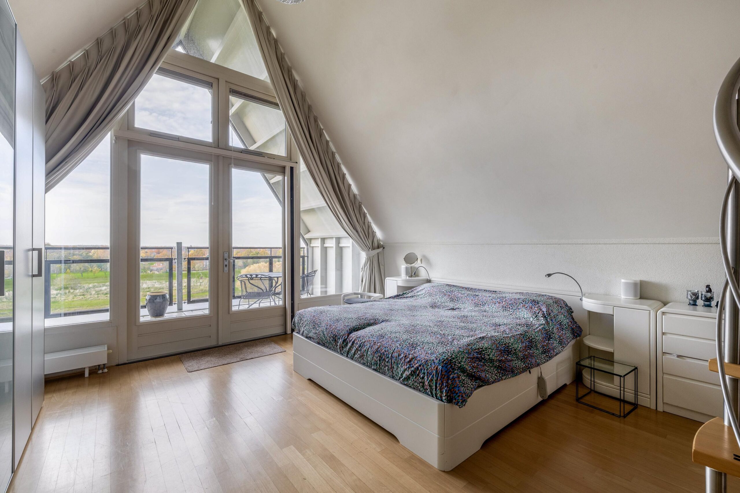In de grote hoofdslaapkamer zijn vaste inbouwkasten aanwezig. Er ligt een parketvloer. De trap biedt toegang tot de vide met daarachter de bergzolder. De slaapkamer biedt een prachtig uitzicht over de Maas. De openslaande deuren, met decorgordijnen en schuifhor, bieden toegang tot het royale terras. Ook vanuit hier is er weer een prachtig uitzicht over de Maas.