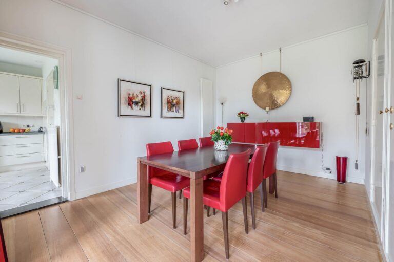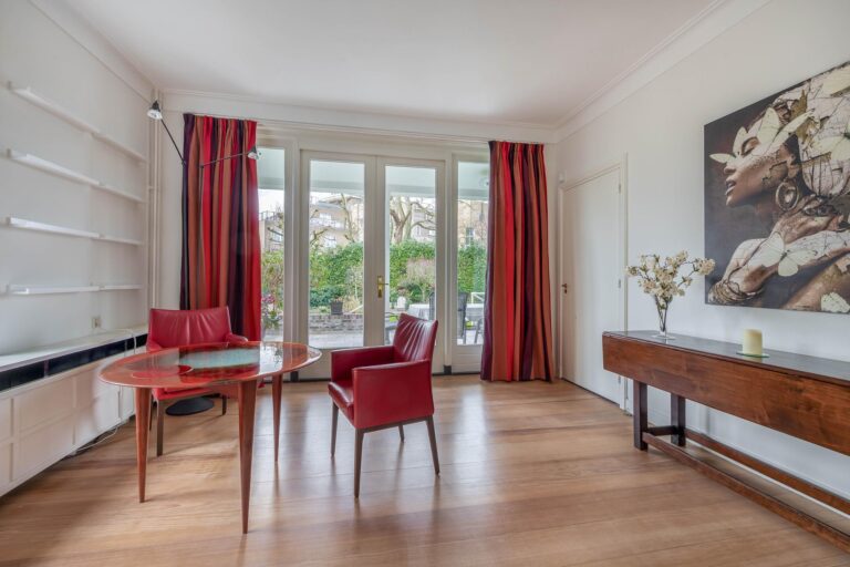 Dankzij het grote lage raam in de woonkamer geniet je van een prachtig zicht op het park. De woning beschikt onder andere over een royale woonkamer, een aparte eetkamer en een dichte keuken. Met vier (of meer) slaapkamers en twee badkamers is er meer dan voldoende ruimte.
