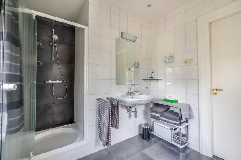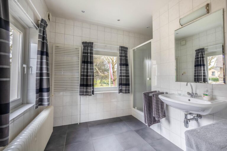 De tweede badkamer (ca. 6m²) is voorzien van een douche, wastafel en mechanische ventilatie.
