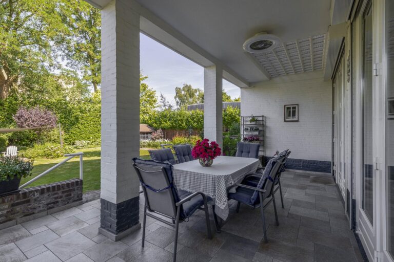 De voortuin is ook voorzien van veel groen. Er is in de hele tuin een sproei installatie en druppelsysteem aanwezig, aangesloten op een grondwaterpomp. Op de eigen oprit is plaats voor tenminste 2 auto’s.